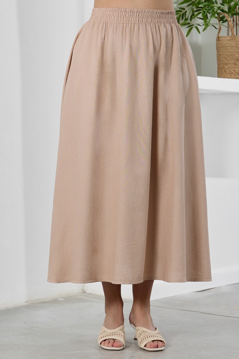 Представляем Вашему вниманию юбку женскую из гладкокрашеного тканого полотна, удлиненная, свободная, с карманами в боковых швах, на притачном поясе с эластичной тесьмой внутри.