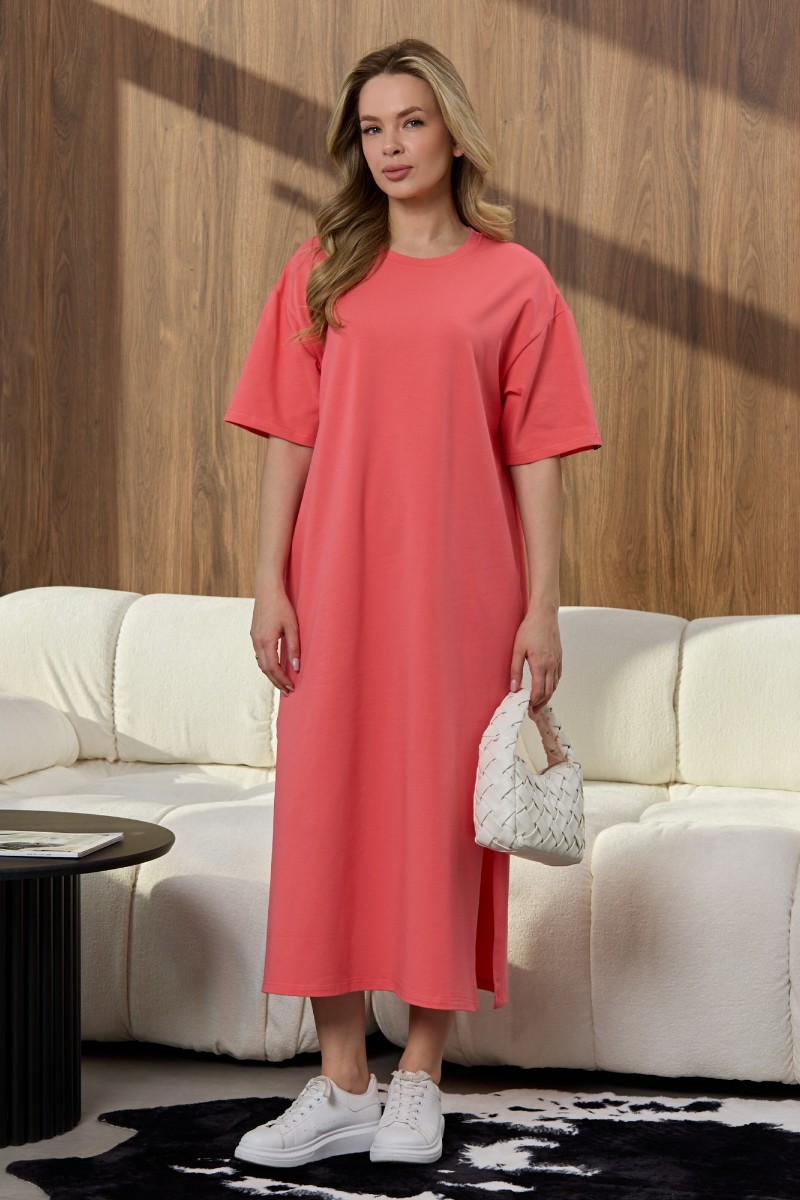 Платье-туника женское "Инта" кулирка с лайкрой (р-ры: 44-62) коралловый