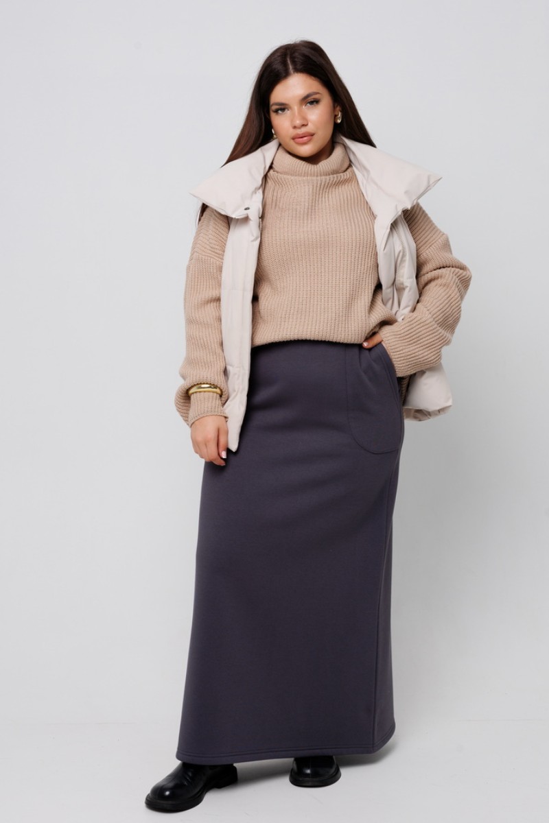 Юбка женская Ю24 (100 см) футер 3-х нитка с начесом (последний размер) графит 52