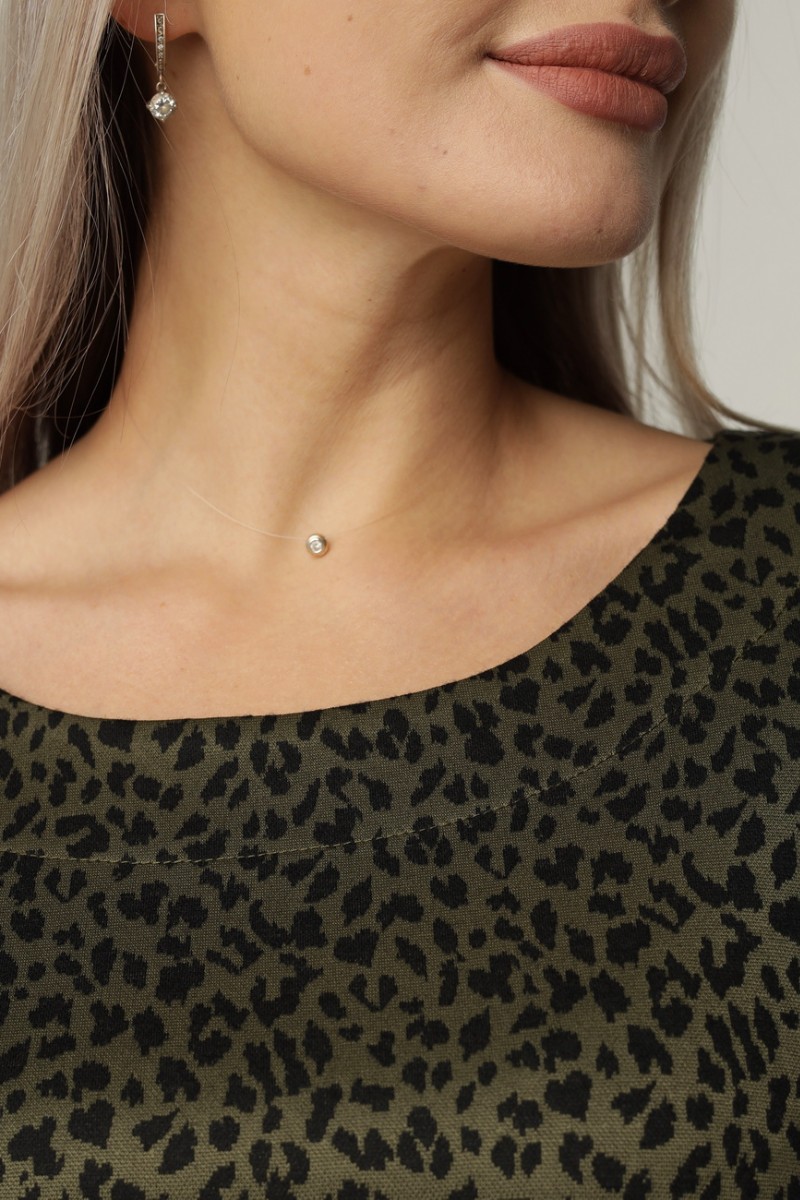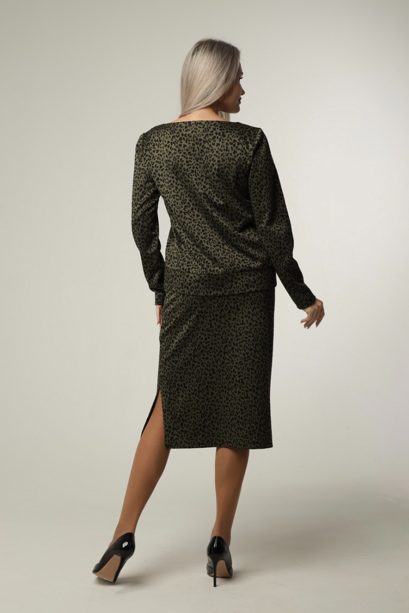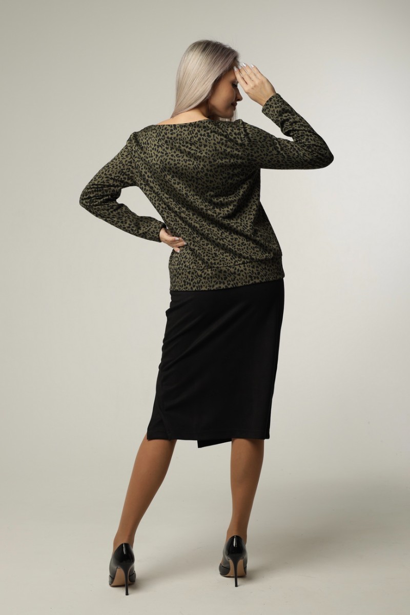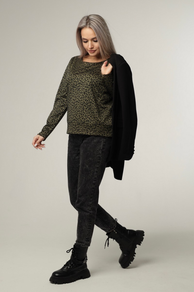 Джемпер женский Д12 жаккард принт (последний размер) хаки леопард 52,56