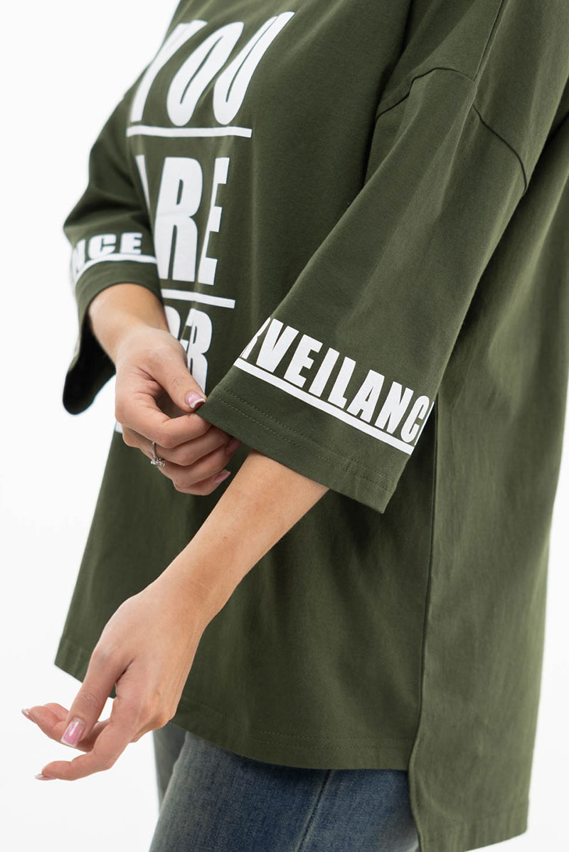 Представляем Вашему вниманию тунику. Ищете идеальное сочетание стиля и комфорта? Эта женская туника с надписями создана специально для вас! Подходит для любых ситуаций – от дома до прогулок и отдыха. Туника выполнена из 100% хлопка, с О-образной горловиной, рукавом 7/8 и удлиненной спинкой.