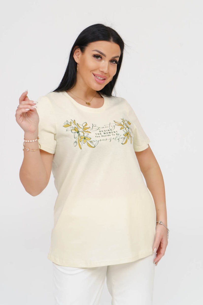 Футболка женская 1662/4 кулирка с лайкрой (последний размер) желтый 48,54