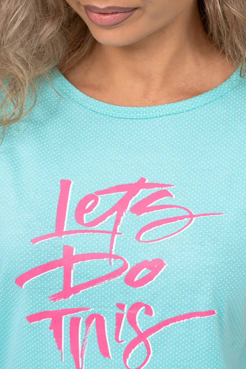 Представляем Вашему вниманию женскую пижаму со штанами, выполненную из мягкого и качественного 100% хлопка. Ткань гипоаллергенна и поэтому идеально подходит, не вызывает аллергических реакций и раздражений нежной кожи. Пижама женская имеет следующий комплект: футболка свободного кроя с яркой печатью и пижамные брюки на мягкой резинке. Пижама женская со штанами удобная и практичная одежда для дома, идеально подойдет для сна, пижамной вечеринки и повседневной носки по дому.