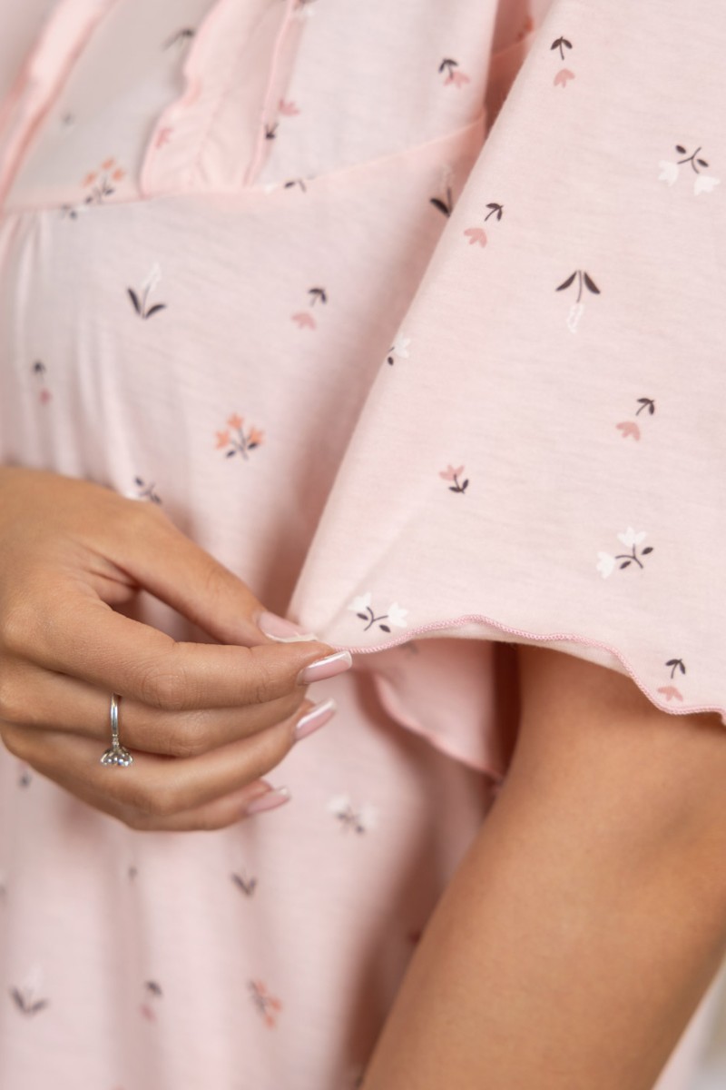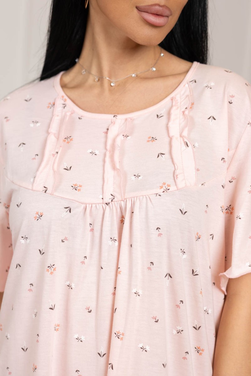 Представляем Вашему вниманию ночную женскую сорочку из хлопка. Модель длиной ниже колена, свободной силуэтной формы с коротким рукавом. Спереди кокетка с рюшем. В нашей сорочке Вы будете чувствовать себя комфортно во время сна.