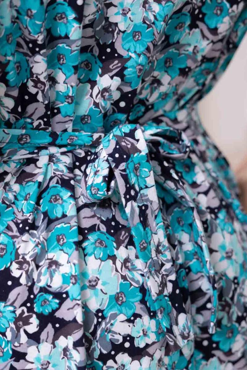 Представляем Вашему вниманию женский халат на молнии из хлопка, с рельефами, карманами в бочке и воланом по кокетке, сзади пояс из основного материала. Волан обработан роликовым швом, карманы обработаны обтачкой компаньоном к основному материалу.