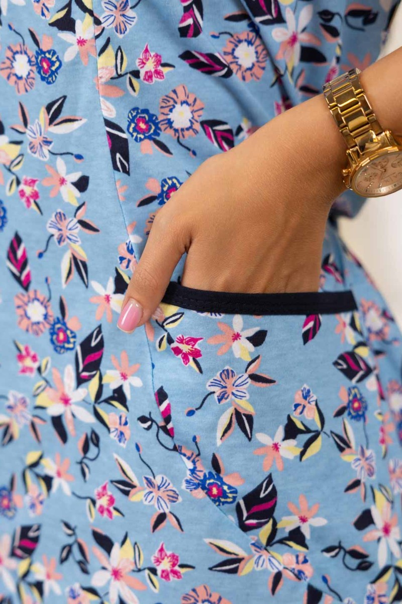 Представляем Вашему вниманию халат женский из трикотажного полотна - кулирка, длиной ниже колена, прямого силуэта. Полочка с рельефами и карманами в них. Рукав втачной базового покроя длиной до линии локтевого сгиба.