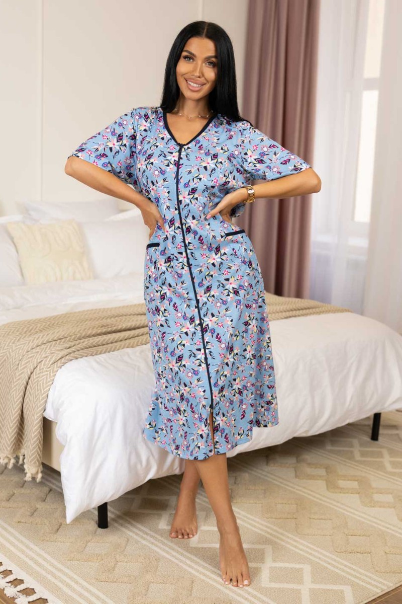 Халат женский 14/55 кулирка (последний размер) голубой 54
