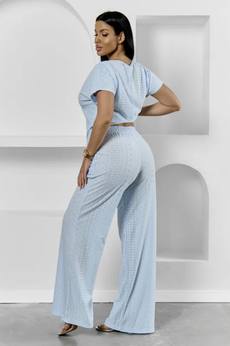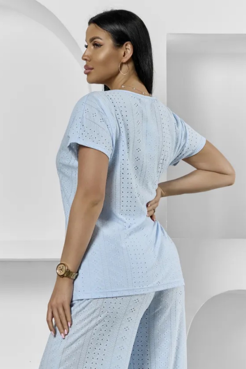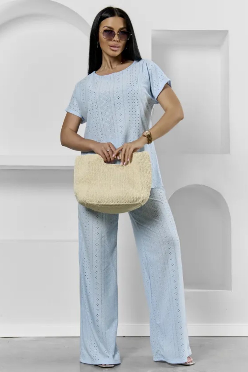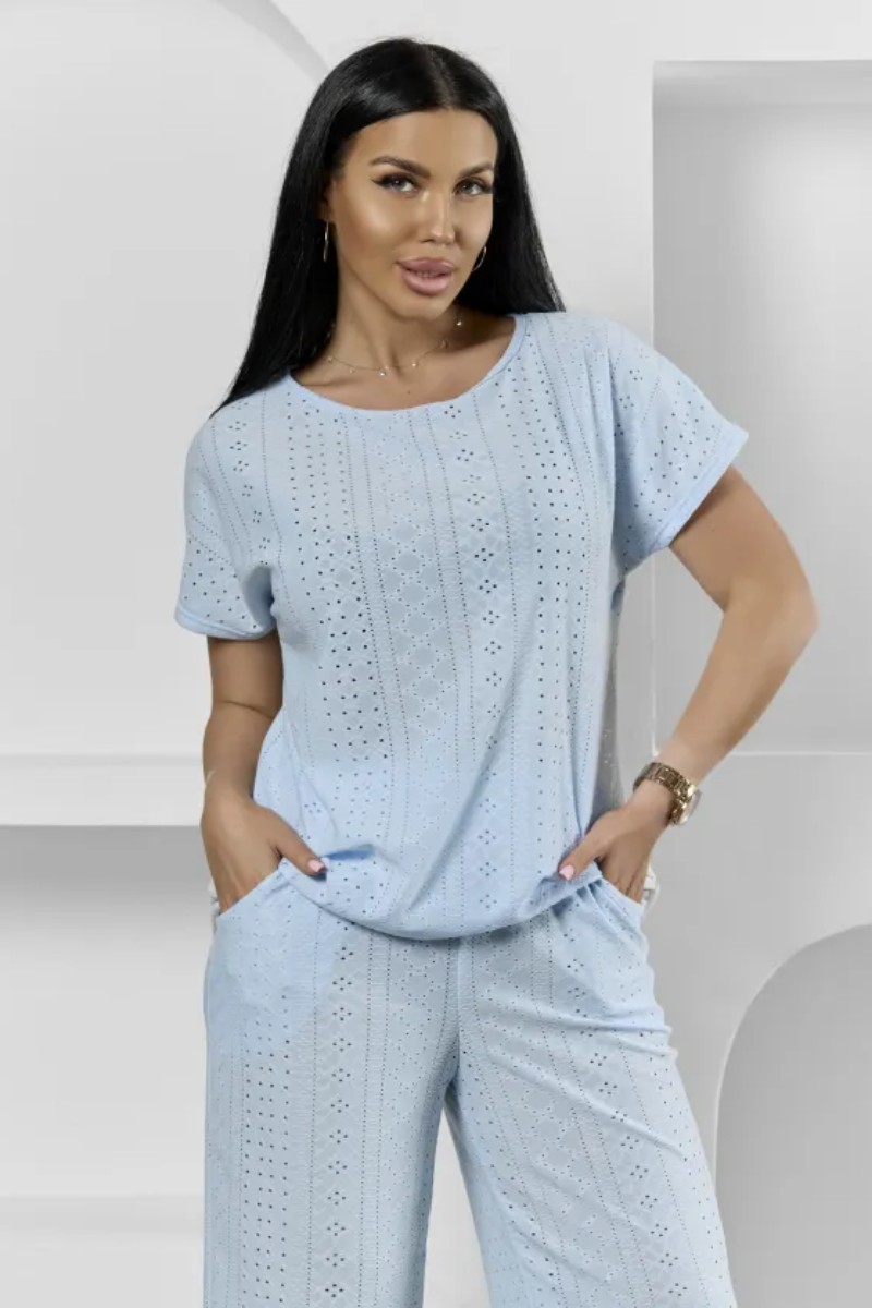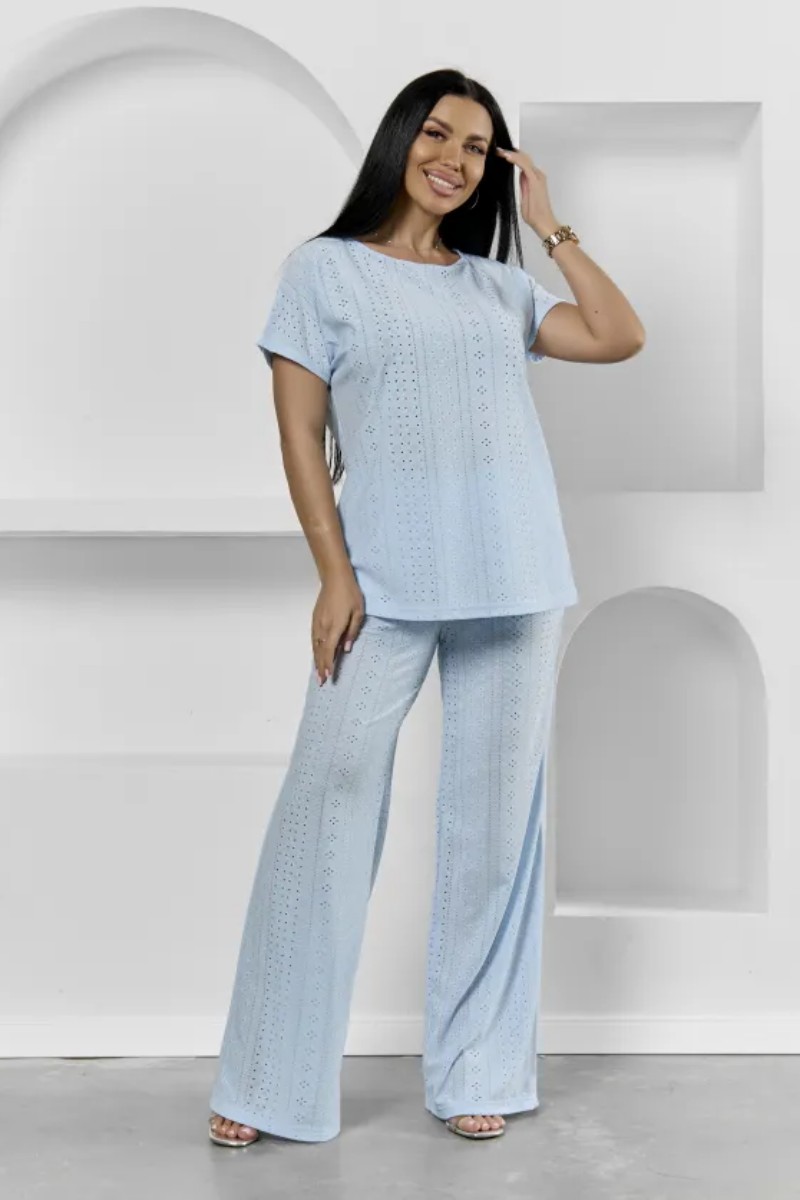 Модель: Костюм женский брючный (комплект из двух предметов: футболка и брюки палаццо). Универсальный вариант для отдыха, прогулок, встреч и поездок.