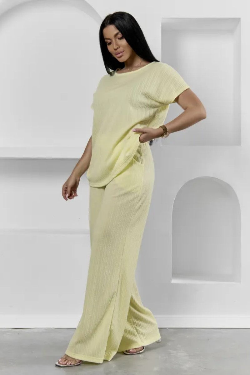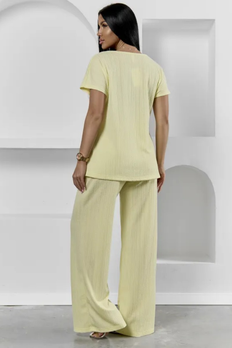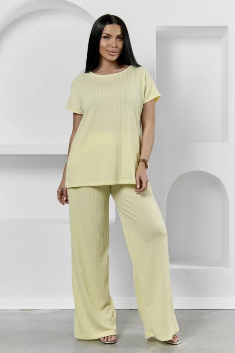 Модель: Костюм женский брючный (комплект из двух предметов: футболка и брюки палаццо). Универсальный вариант для отдыха, прогулок, встреч и поездок.