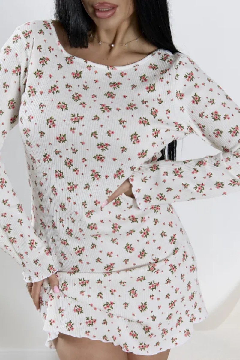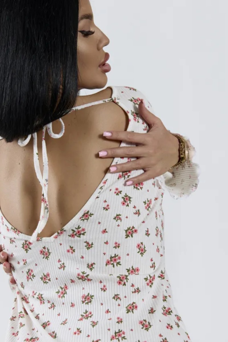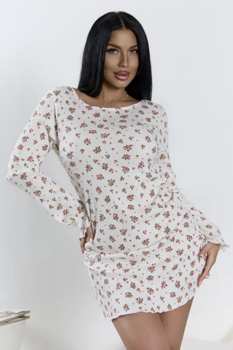 Представляем Вашему вниманию женское платье-сорочку, которое подходит для домашнего отдыха, сна, прогулок и пляжного сезона. Длинный расклешенный рукав, открытая спина с завязками, прилегающий силуэт, длина выше колена, круглый вырез горловины. Цветочный принт. Материал: 100% хлопок (кашкорсе). Натуральная дышащая ткань, гипоаллергенная, мягкая, эластичная. Трикотажное полотно идеально облегает фигуру, не деформируется после стирок, обеспечивает комфорт при носке. Дизайн: Открытая спина с регулируемыми завязками — главная изюминка модели. Позволяет менять посадку и создавать идеальный силуэт. Длинные расклешенные рукава придают образу романтичность и воздушность, визуально вытягивают фигуру. Прилегающий крой мягко подчеркивает достоинства, не сковывая движений. Круглый вырез горловины аккуратно обрамляет декольте, сохраняя благородную сдержанность. Цветочный принт добавляет свежесть и легкость, создавая летнее настроение. Длина выше колена сохраняет динамику и обеспечивает свободу.