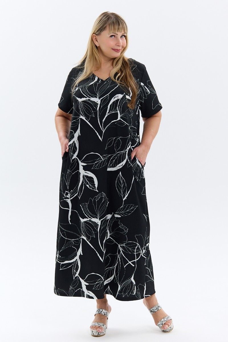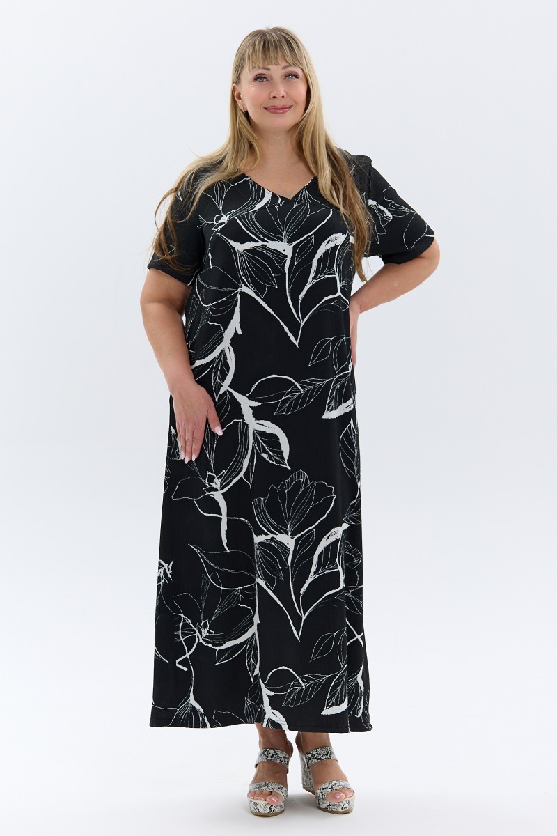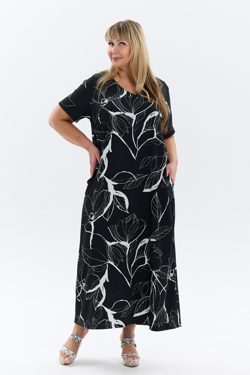 Платье женское П-048 жатка набивная (р-ры: 50-64) чёрный