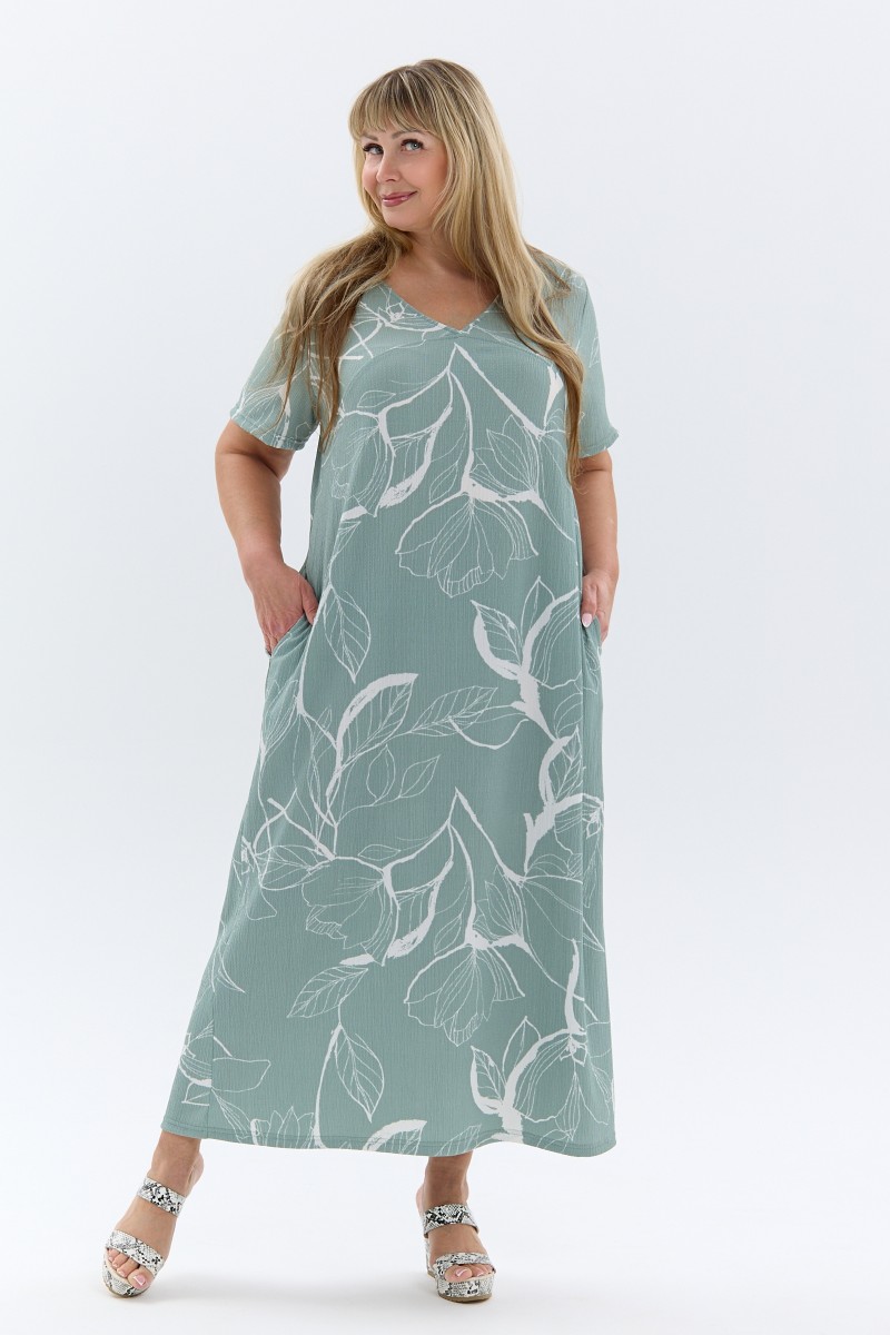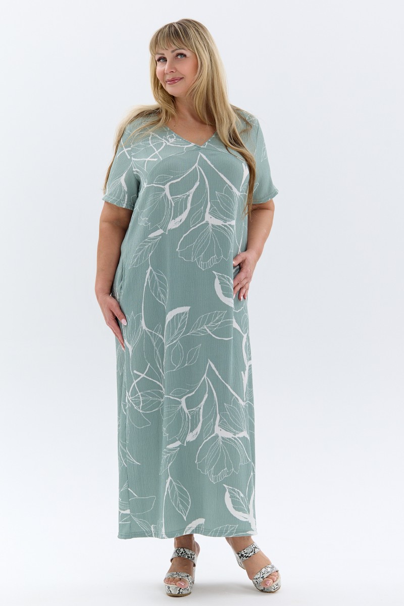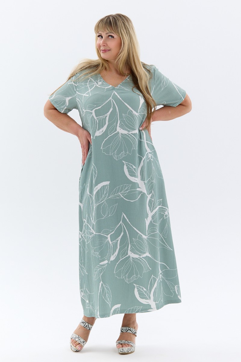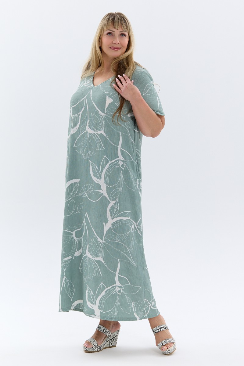 Платье женское П-048 жатка набивная (р-ры: 50-64) ментоловый