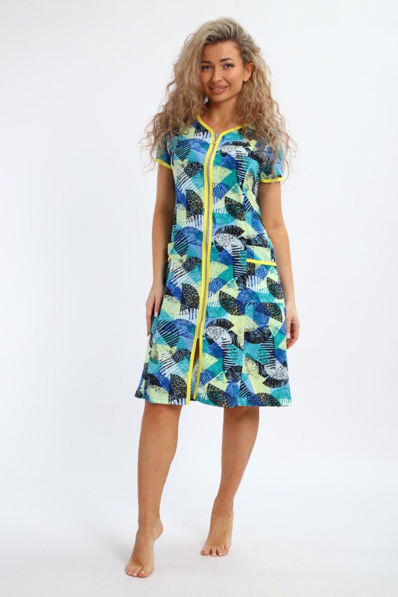 Представляем Вашему вниманию легкий женский халат из 100% натурального, дышащего хлопка. Модель имеет интересную расцветку, которая красиво смотрится и поднимает настроение. Изделие хорошо сидит на фигуре и подчеркивает её достоинства. В нём Вы будете чувствовать себя комфортно и уверенно.