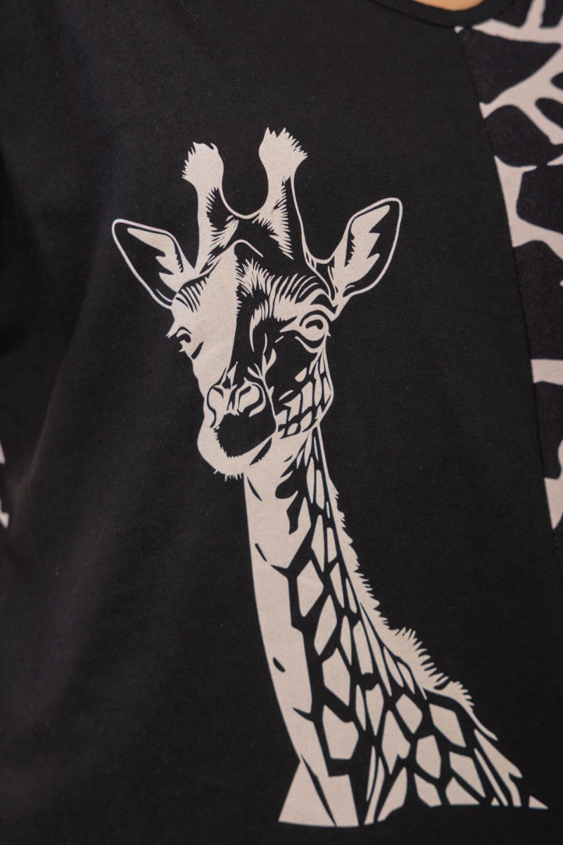 Представляем Вашему вниманию женский костюм из хлопка. Футболка с цельнокроеным рукавом, манжетой, спереди печать на полочке с одной стороны и V-образным вырезом. Брюки с лампасами и карманами в боковых швах.
