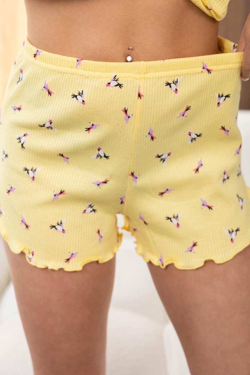 Пижама женская 2068/6 кашкорсе (р-ры: 44-54) желтый-розовые птицы