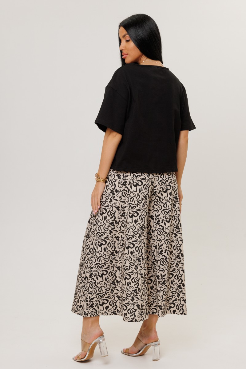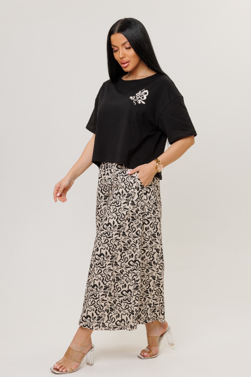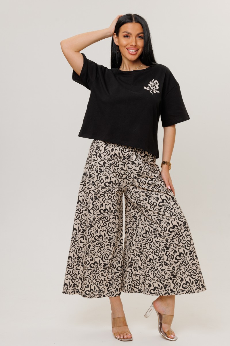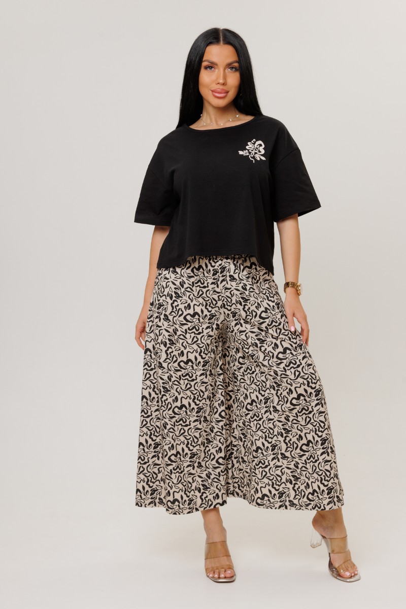 Костюм двойка женский №2262/1 кулирка (р-ры: 44-54) черный-бежевые брюки