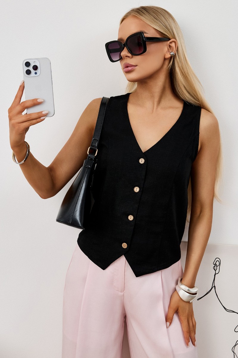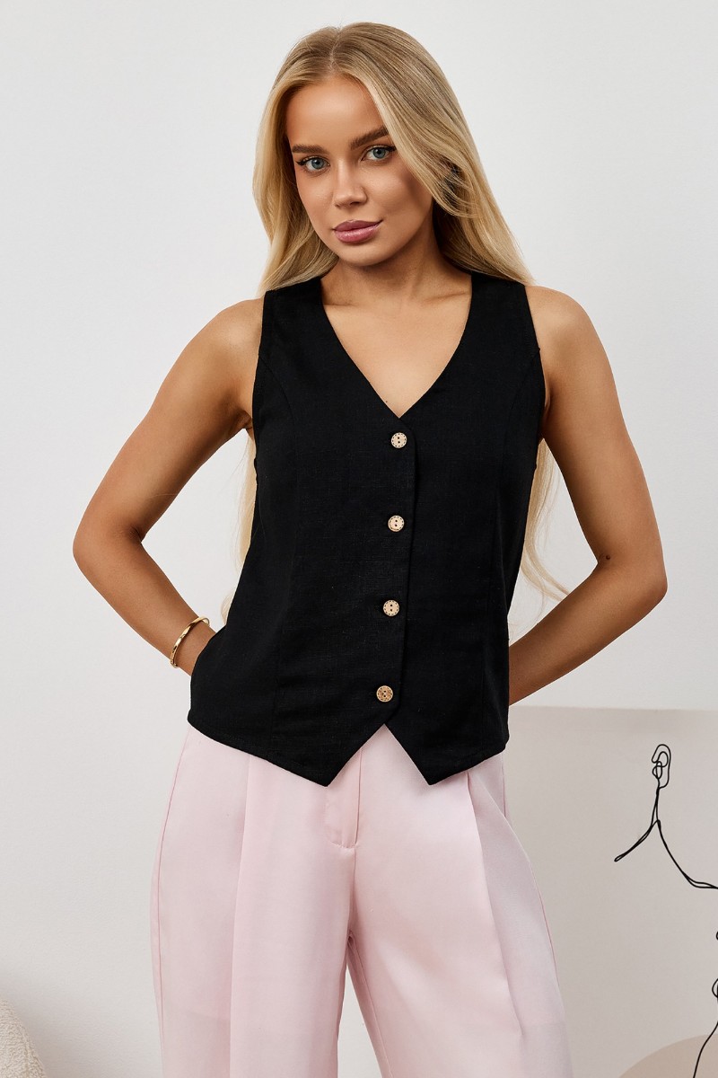 Жилет женский "Аманти-1" лён вискоза (р-ры: 42-52) черный