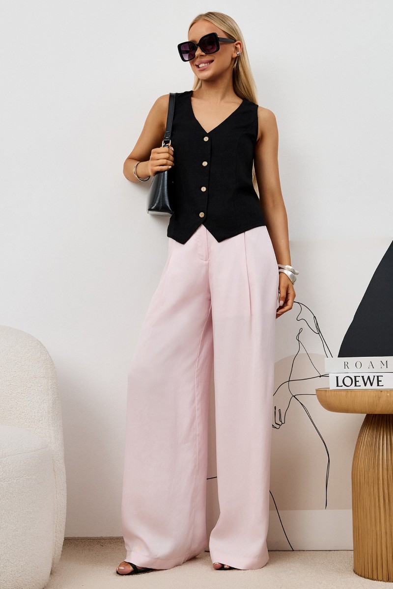 Представляем Вашему вниманию женский жилет из плательной ткани "лён-вискоза". Модель полуприлегающего силуэта с рельефными вытачками на полочке, рельефами на спинке для комфортной посадки по фигуре, без подкладки, с центральной бортовой застежкой на петли и пуговицы.