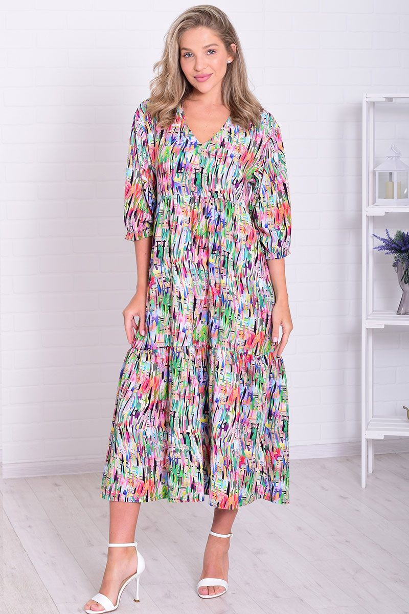 Платье женское Ф1074к штапель (р-ры: 46-56) разноцветный