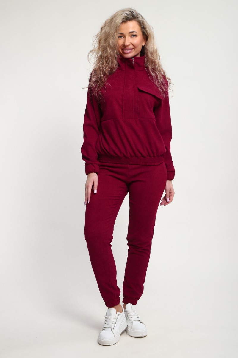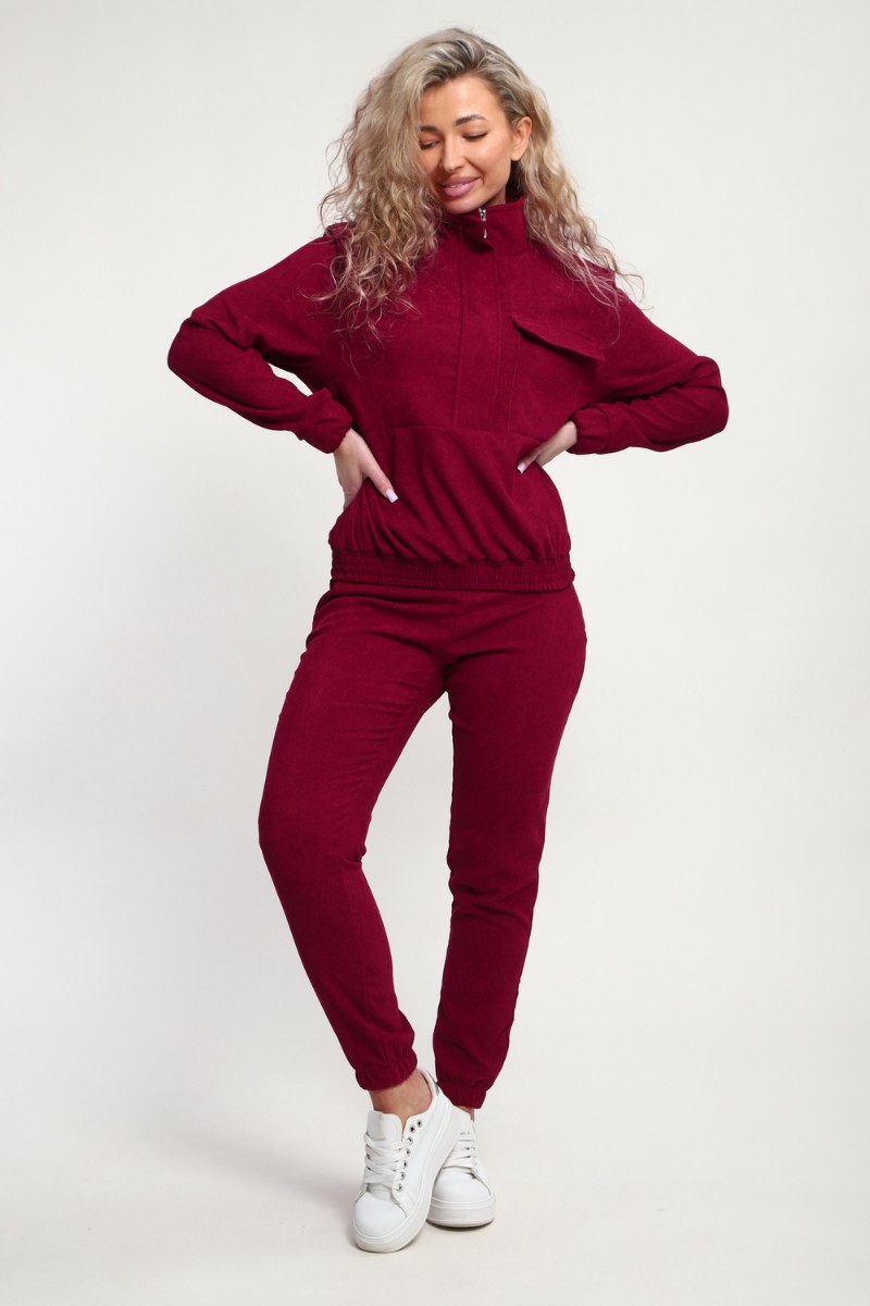 Представляем Вашему вниманию стильный женский костюм двойку из микровельвета, который состоит из толстовки и брюки. Толстовка - воротник-стойка на молнии с клапаном, рукав на резинке. Брюки с карманами по бокам, на резинке в поясе и по низу. Комплект обеспечит максимум комфорта и полную свободу движений в повседневной носке.