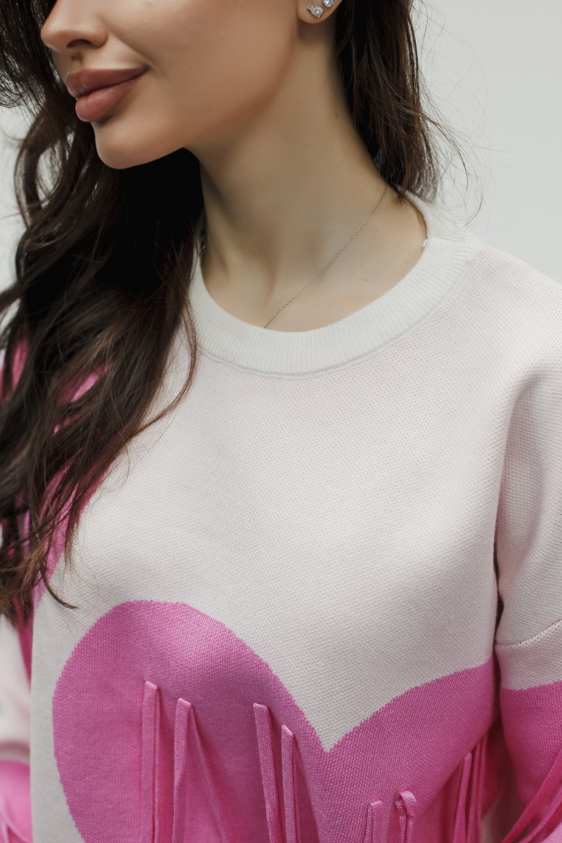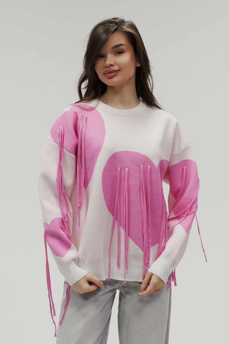 Джемпер женский "Сердце" №059150 вязаный трикотаж (р-ры: 46-52) белый
