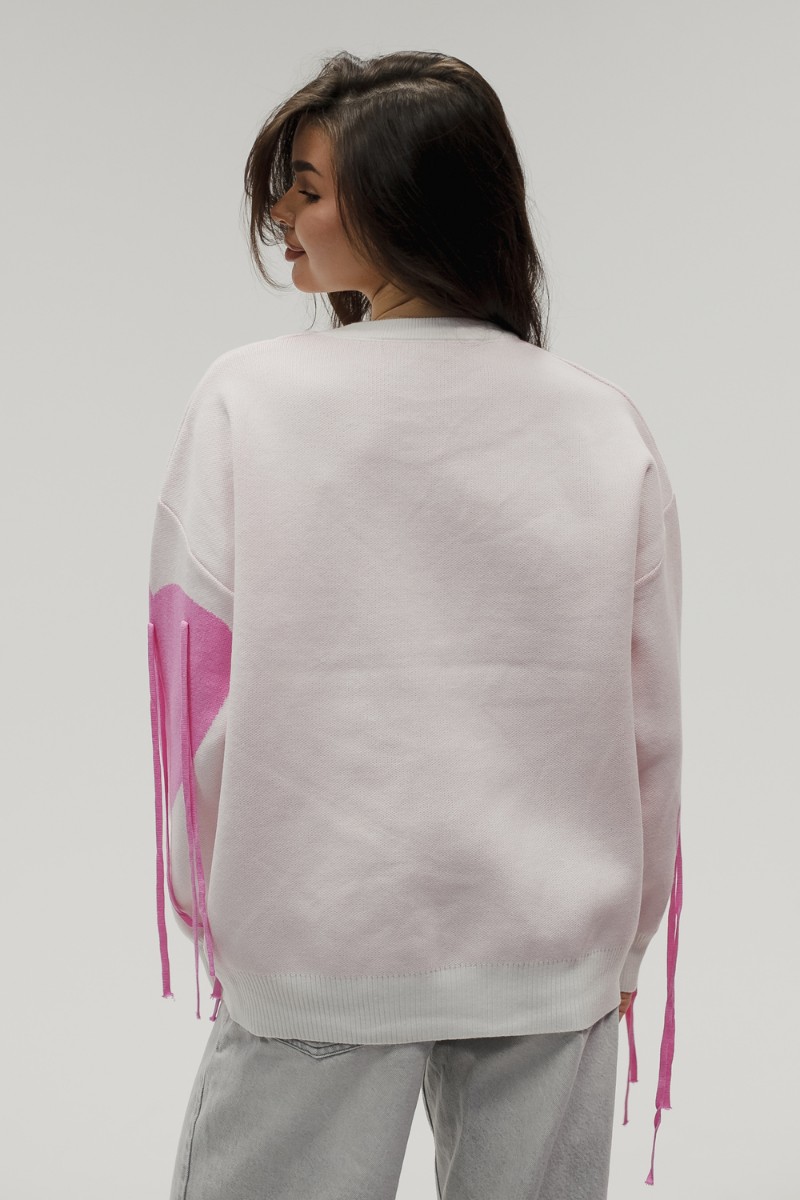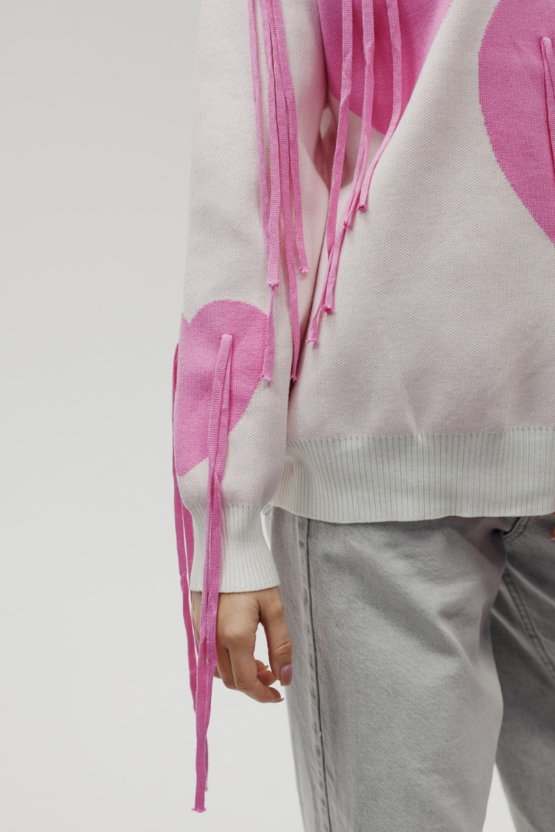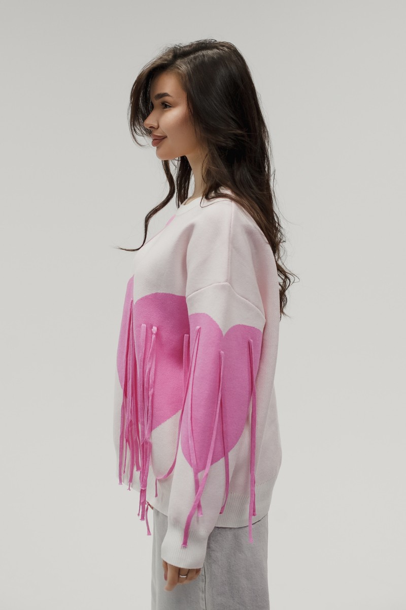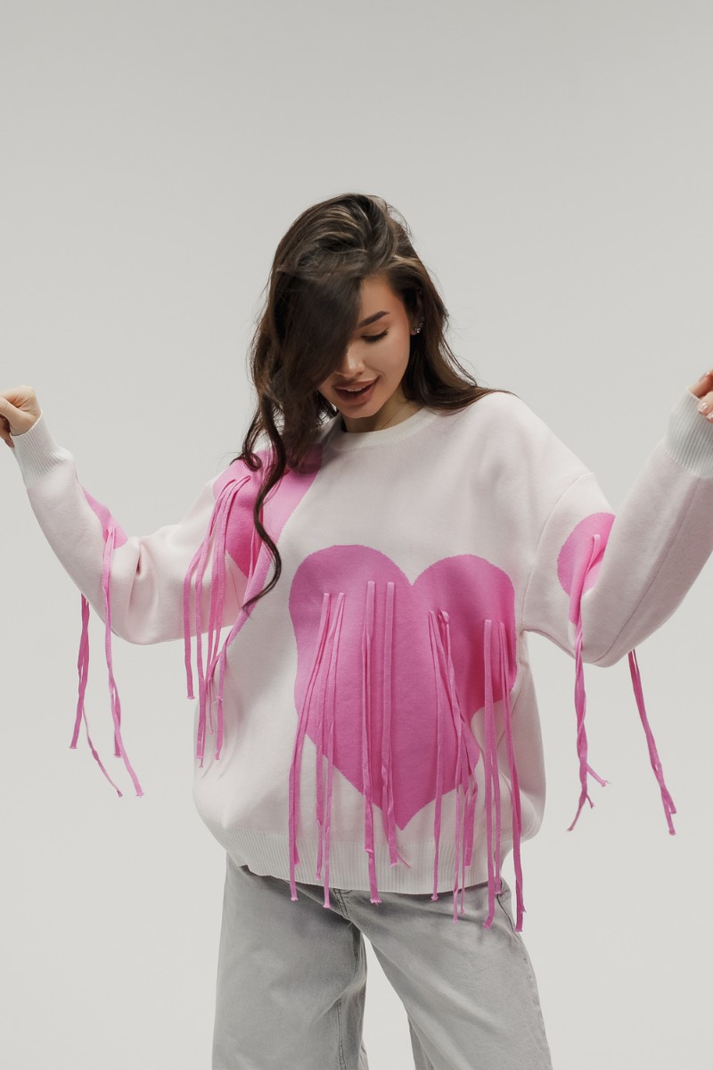 Представляем Вашему вниманию тёплый вязаный свитер с сердечками и декоративными верёвочками романтика в каждой детали! Почувствуйте уют и нежность с этим стильным вязаным свитером: тёплый трикотаж и милый дизайн создадут особое настроение и подчеркнут вашу индивидуальность. Модель сочетает комфорт повседневной вещи с романтичными деталями вывязанными сердечками по всей поверхности свитера и изящными верёвочками на плечах или по бокам, которые можно завязать в аккуратные элегантные бантики это придаёт модели особый шарм и позволяет менять образ по настроению. Плотный вязаный трикотаж (состав: 30% хлопка, 40% вискоза, 30% полиэстер) отлично сохраняет тепло, приятен к телу и не вызывает раздражения. Свободный силуэт не сковывает движений, подходит для разных типов фигуры и легко комбинируется с другой одеждой. Свитер будет отлично смотреться с джинсами скинни или бойфрендами. Для повседневного кэжуал‑образа, с юбками миди и высокими сапогами,для романтичного зимнего лука, с легинсами и объёмной верхней одеждой для уютных прогулок, а также со спортивной обувью или ботинками на толстой подошве для стильных городских образов. Сезонность осень, зима, весна, прохладное лето. Несмотря на декоративные элементы, свитер остаётся удобным в носке бантики не мешают, а при желании верёвочки можно оставить распущенными.