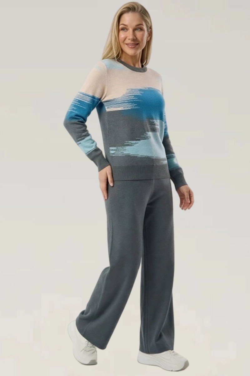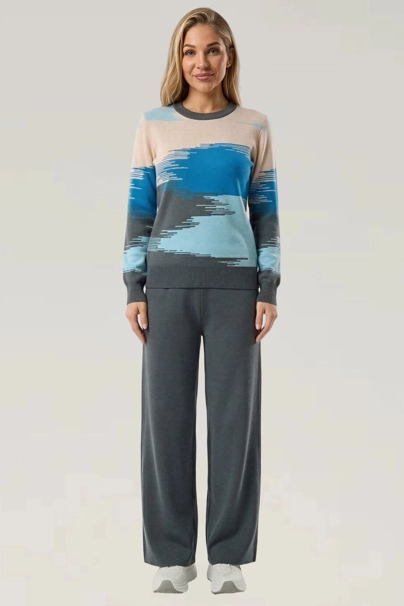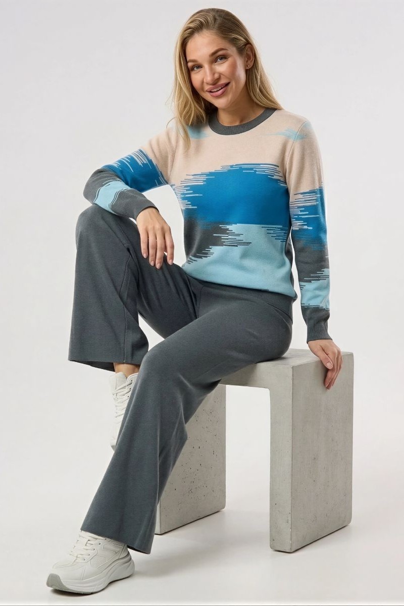 Представляем Вашему вниманию тёплый женский вязаный костюм — гармоничный комплект из свитера и брюк, выполненный из плотной, мягкой и эластичной пряжи (состав: 30% хлопок, 40% вискоза, 30% полиэстер), который надёжно сохраняет тепло и при этом приятно прилегает к телу. Свитер свободного кроя визуально стройнит, манжеты и нижняя кромка обработаны резинкой для лучшей посадки и сохранения формы. Плечи оформлены со скосом или лёгким «полупритёком» для комфортной посадки на фигуры разных типов; брюки средней посадки с эластичным поясом и внутренней мягкой тесьмой или шнурком обеспечивают индивидуальную регулировку, прямой силуэт свободно сидит, благодаря эластичности материала изделие «тянется» и адаптируется под параметры от 42 до 50 размера. Аккуратные декоративные швы, узорная вязка, легко сочетаются с верхней одеждой и аксессуарами; материал и плотная вязка делают костюм универсальным для осенне-зимнего периода, весны и прохладного лета— он отлично подойдёт как для прогулок и поездок, так и для уютных домашних вечеров или неофициальных встреч; уход: рекомендована деликатная стирка руками или в машине на щадящем режиме при температуре не выше 30°C, сушить в расправленном виде на горизонтальной поверхности, не отбеливать, при необходимости возможна бережная химчистка; благодаря продуманной посадке и использованию качественной пряжи комплект сохраняет форму и внешний вид даже при регулярной носке, подчёркивает женственность без лишней вычурности и станет практичным элементом гардероба тех, кто ценит комфорт, тепло и стиль.