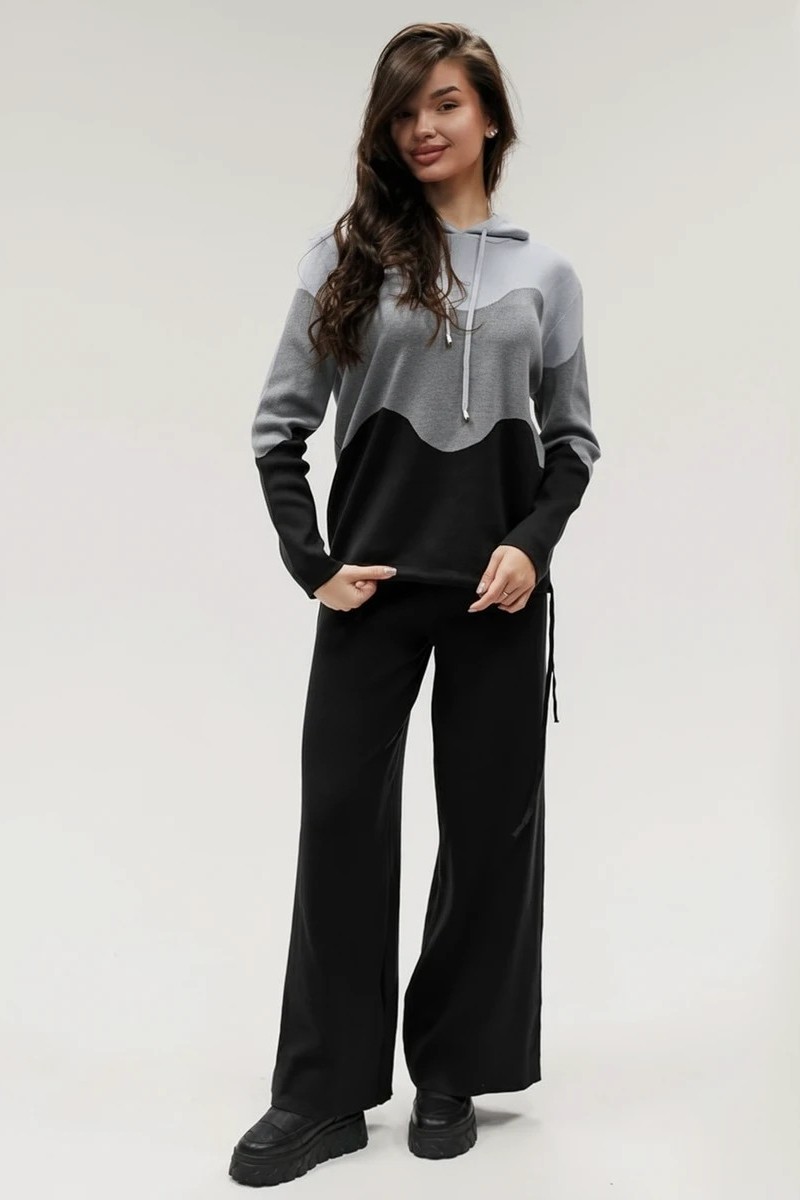 Костюм двойка женский "Волна" №057882 вязаный трикотаж (р-ры: 42-50) черный