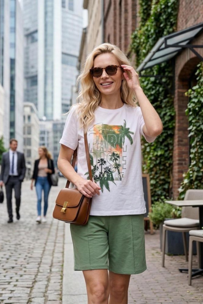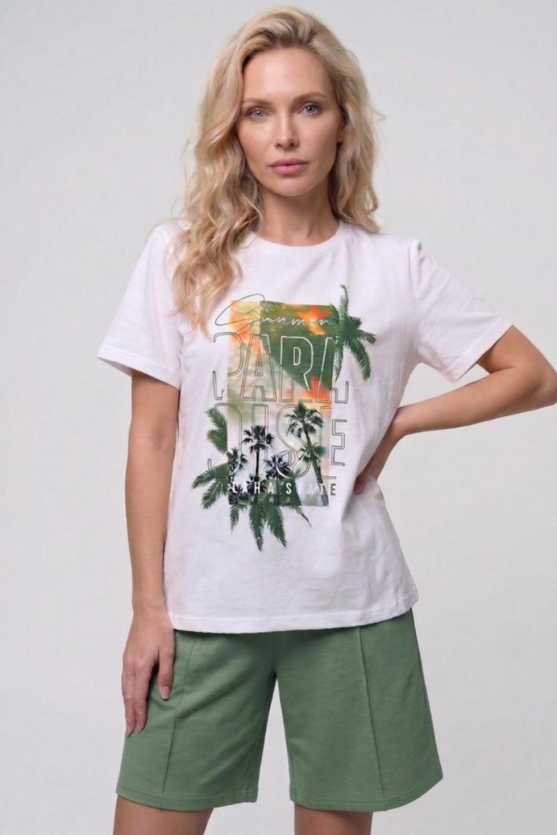Представляем Вашему вниманию легкий женский костюм двойку, сшитый из высококачественного материала, который хорошо пропускает воздух, позволяя коже дышать. Комплект имеет интересную расцветку, которая красиво смотрится и поднимает настроение. Изделие хорошо сидит на фигуре и подчеркивает её достоинства. В нём Вы будете чувствовать себя комфортно и уверенно.