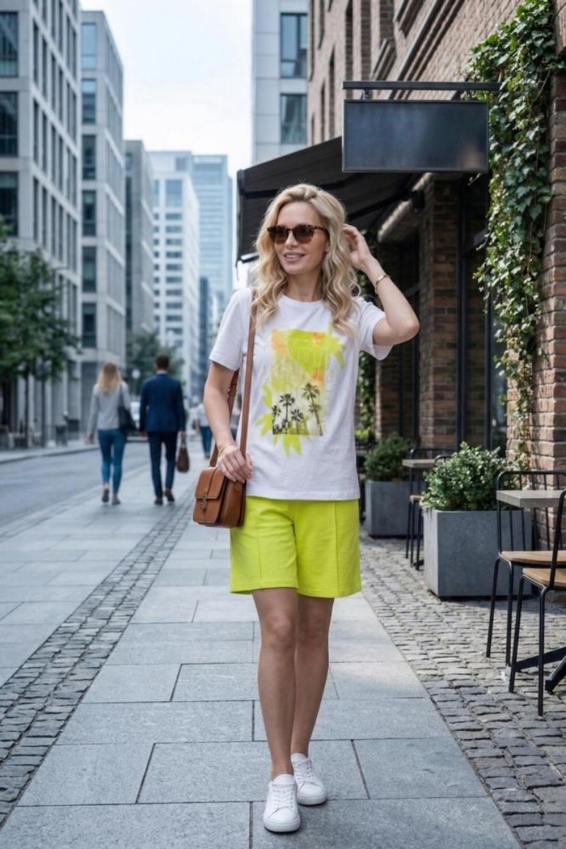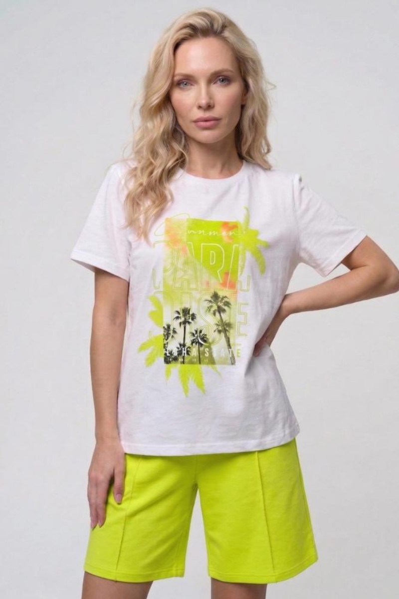 Представляем Вашему вниманию легкий женский костюм двойку, сшитый из высококачественного материала, который хорошо пропускает воздух, позволяя коже дышать. Комплект имеет интересную расцветку, которая красиво смотрится и поднимает настроение. Изделие хорошо сидит на фигуре и подчеркивает её достоинства. В нём Вы будете чувствовать себя комфортно и уверенно.
