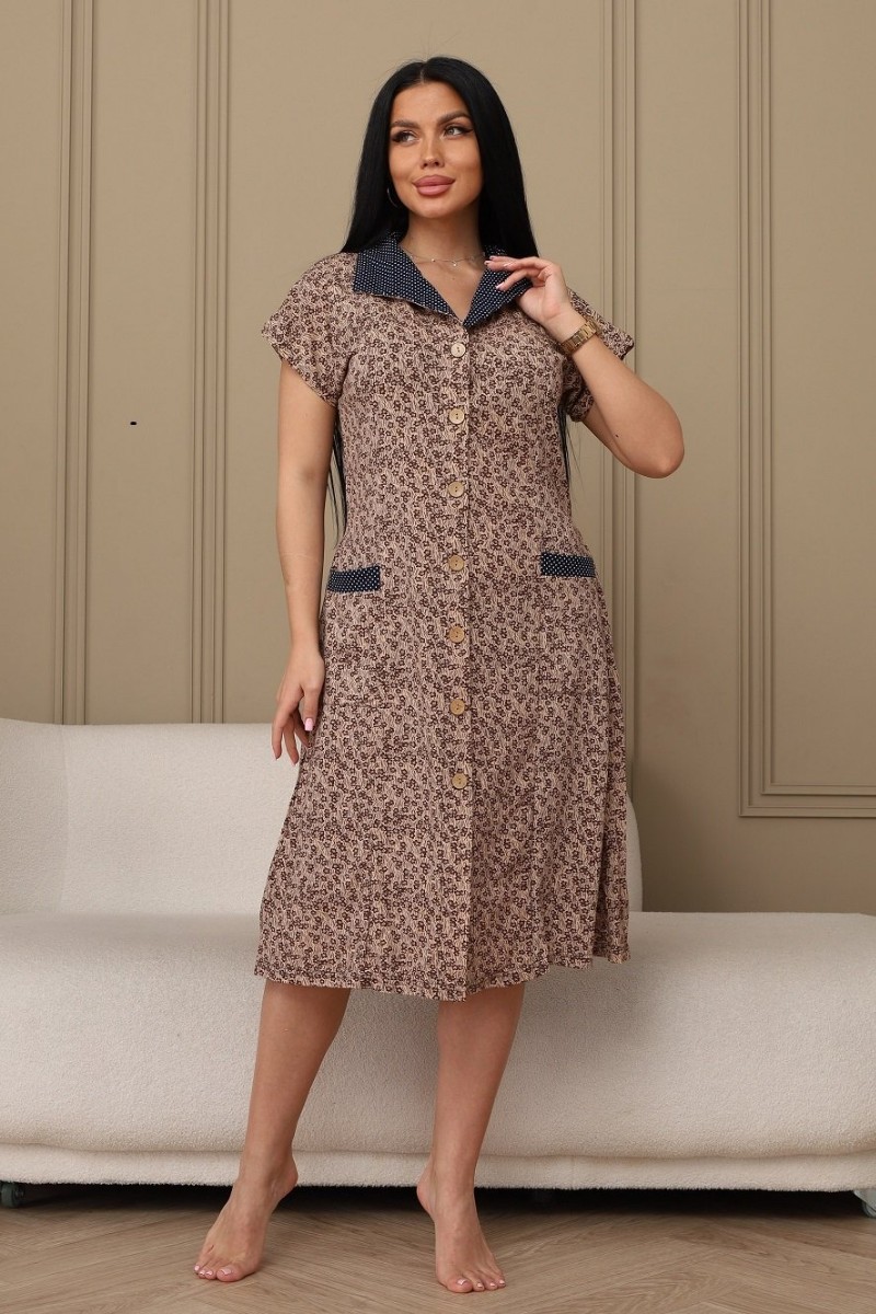 Халат женский 029 кулирка (р-ры: 50-66) бежевый-цветы