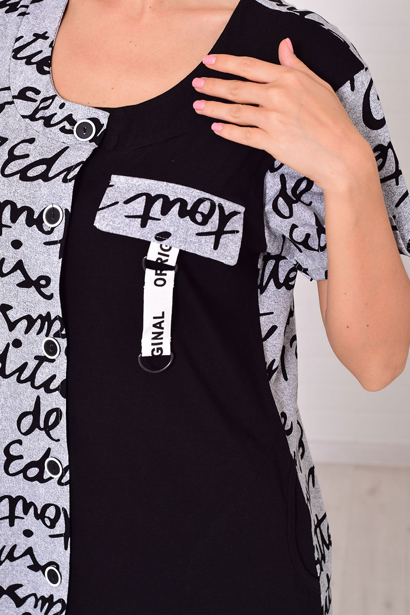 Халат женский 3212а кулирка (р-ры: 48-66) серый+черный
