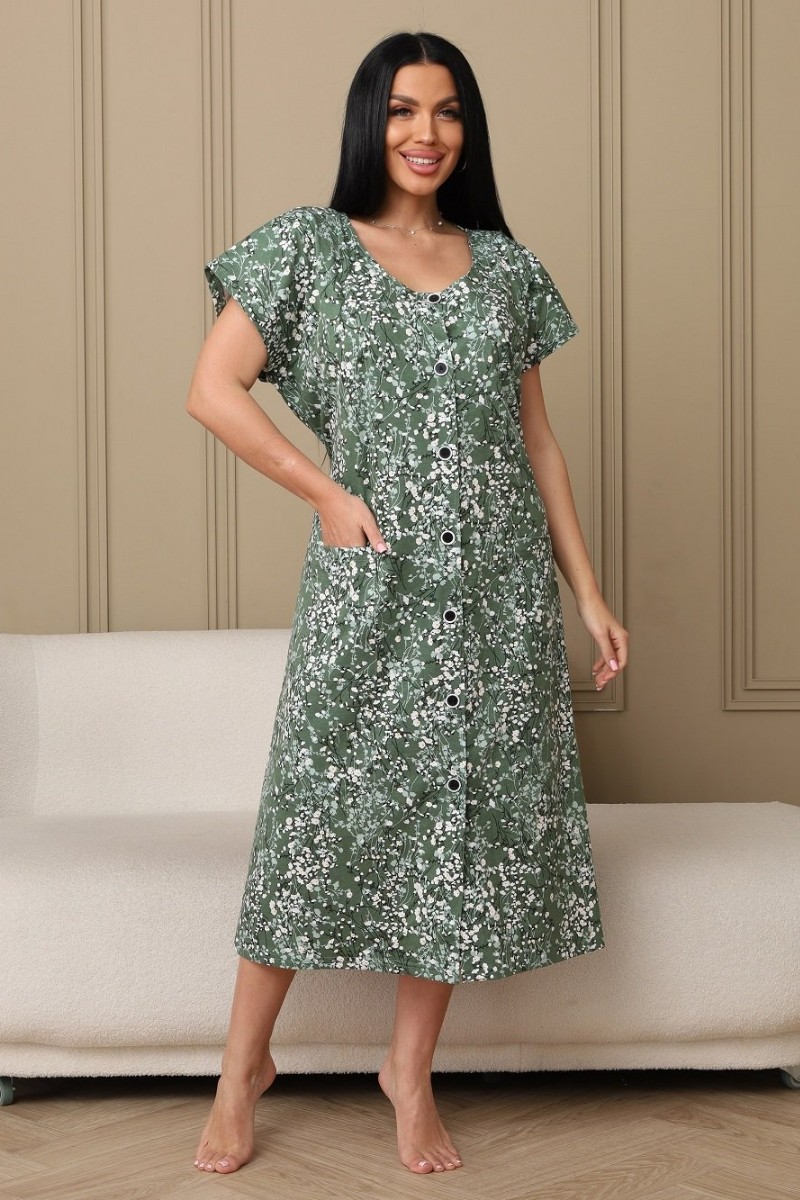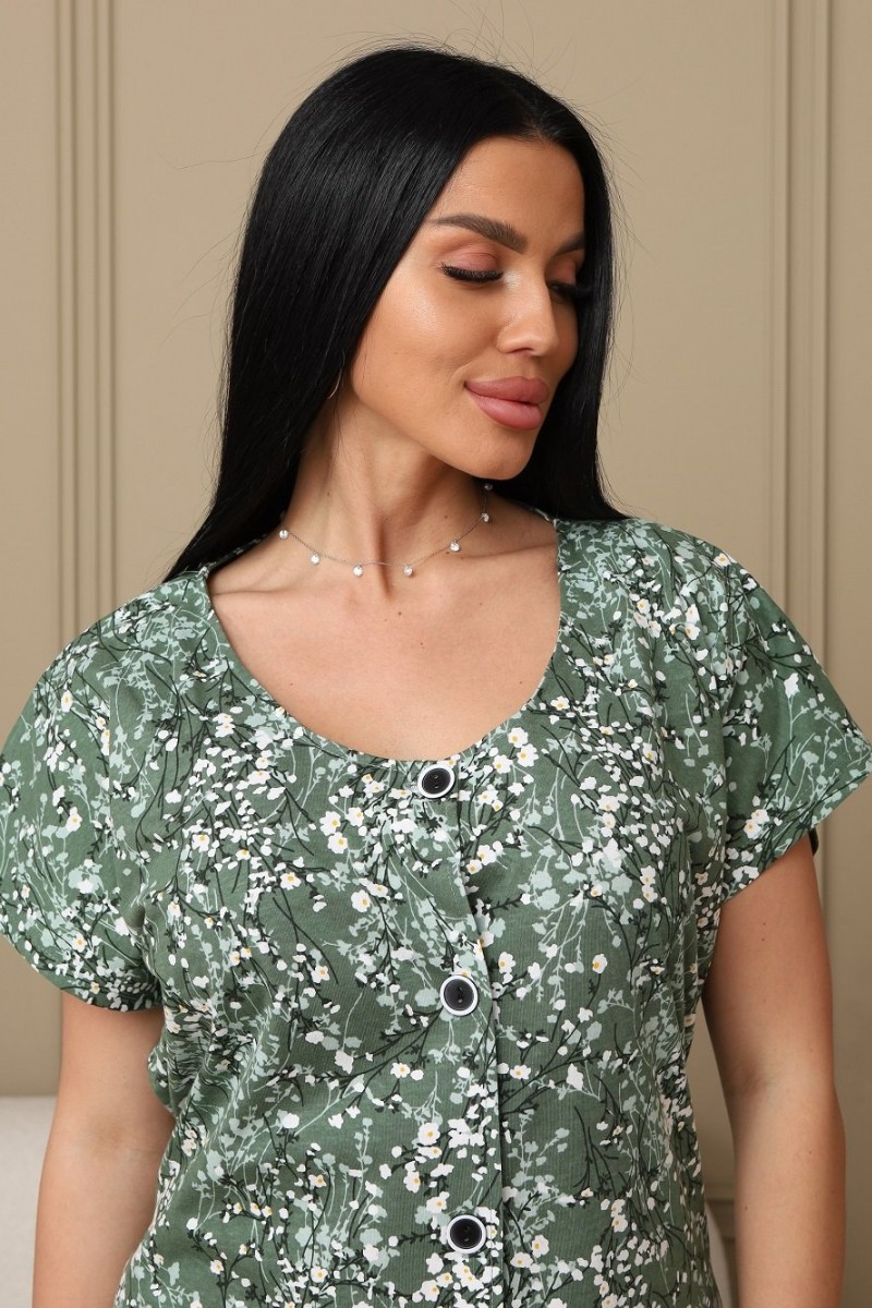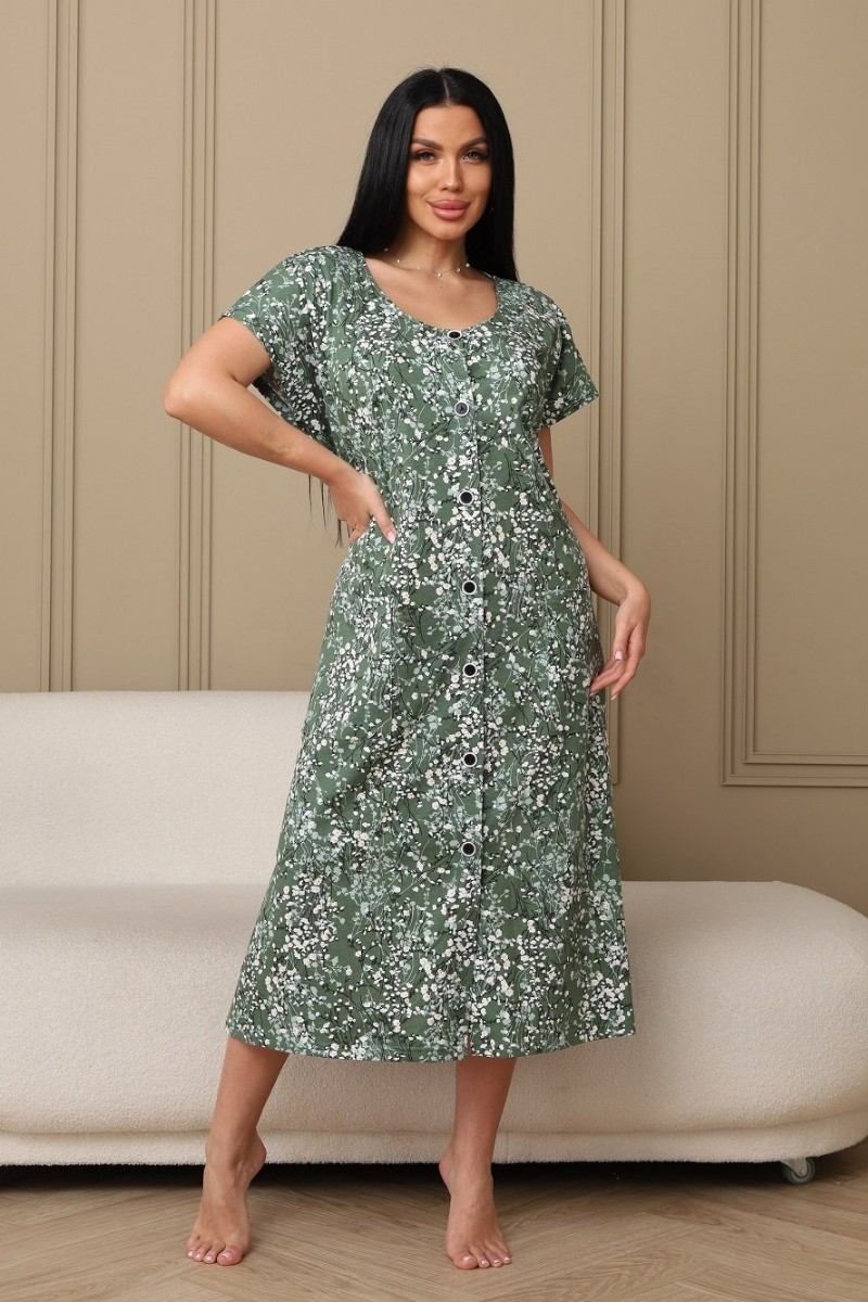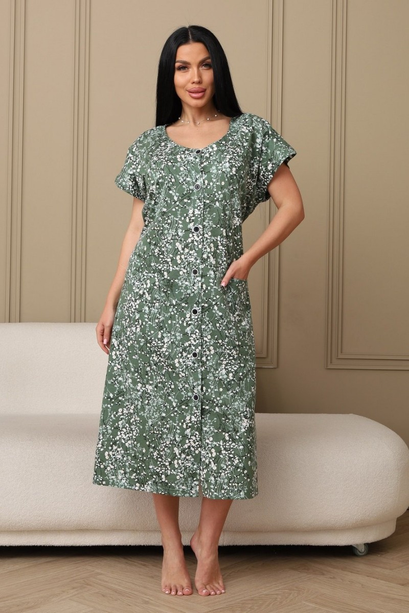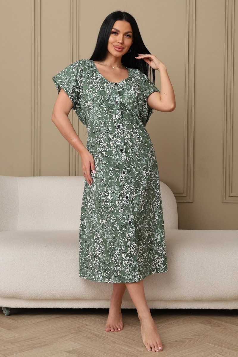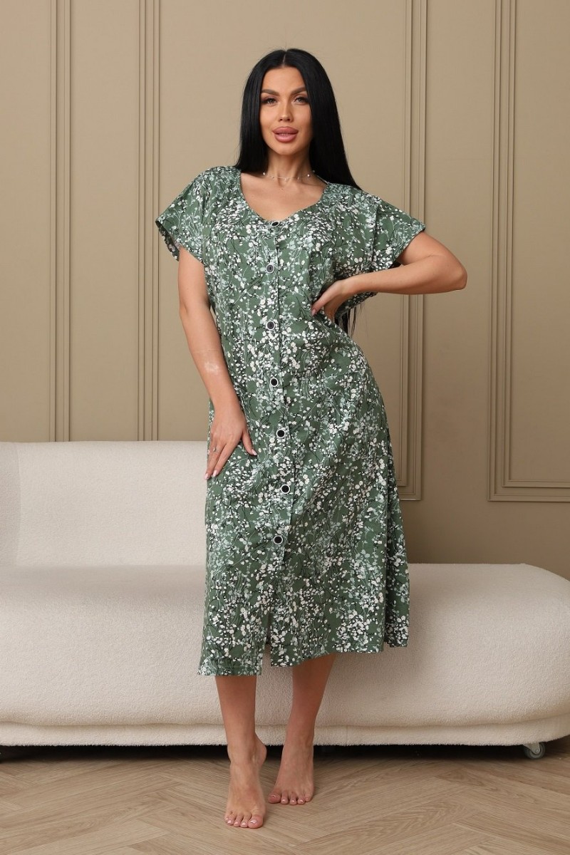 Халат женский 001 кулирка (р-ры: 54-70) зеленый-полянка
