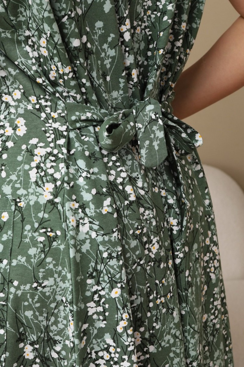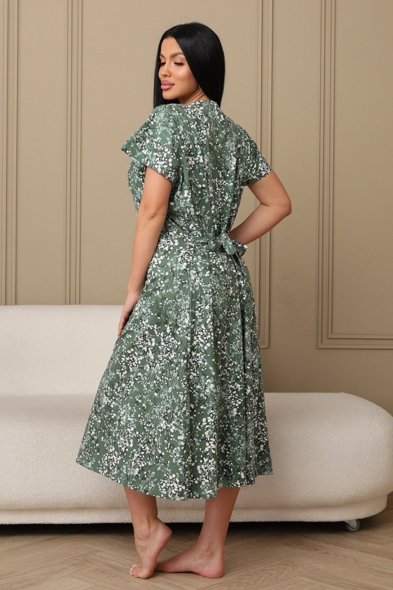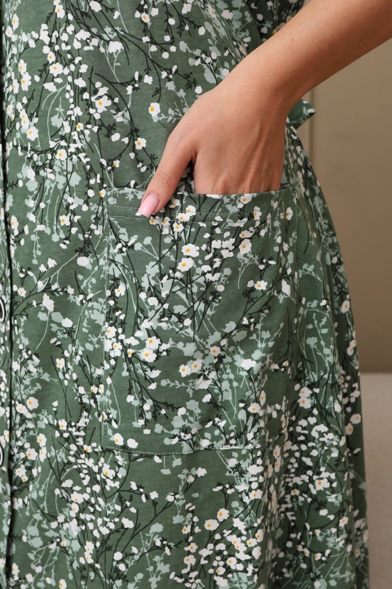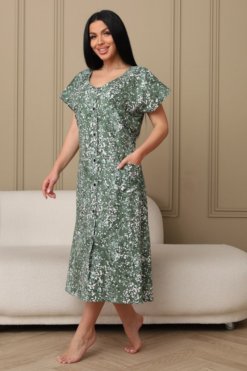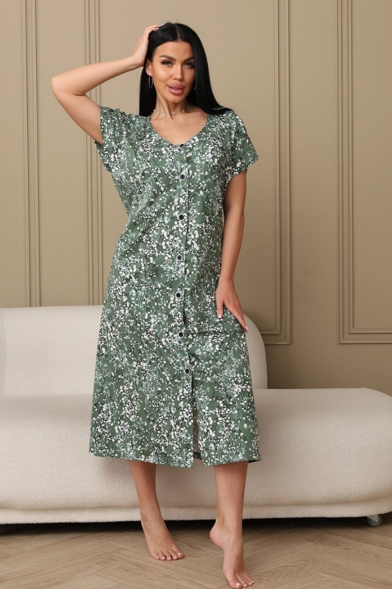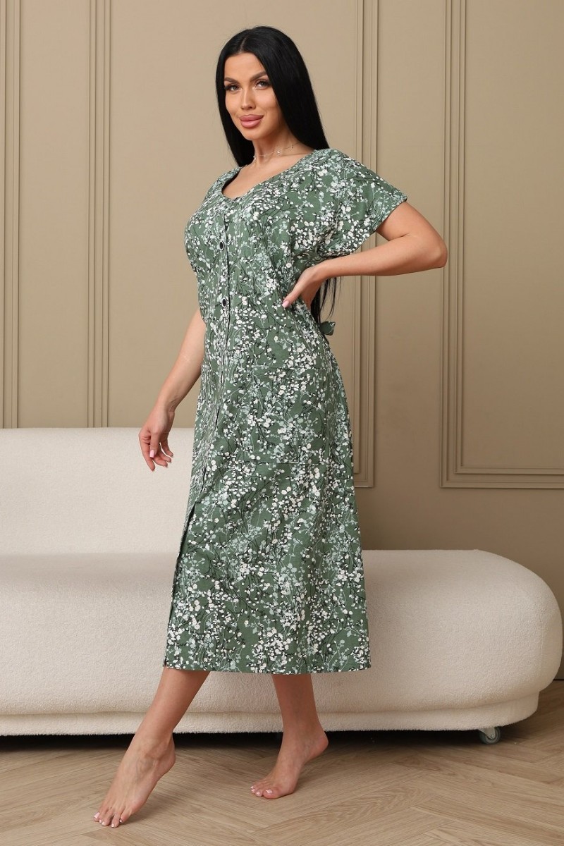 Халат женский 001 кулирка (р-ры: 54-70) зеленый-полянка