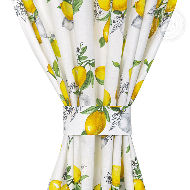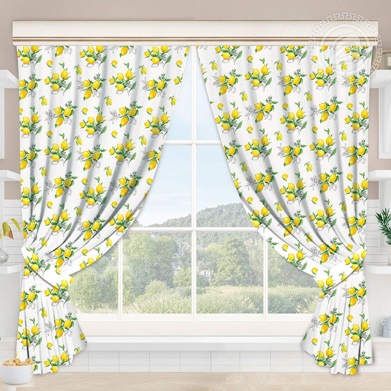 Шторы для кухни с подхватом рогожка "Лимоны"