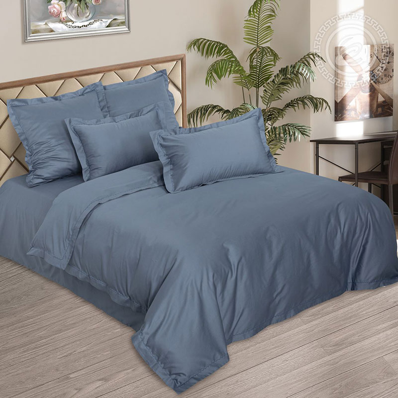 Постельное белье мако-сатин "Сине-серый"