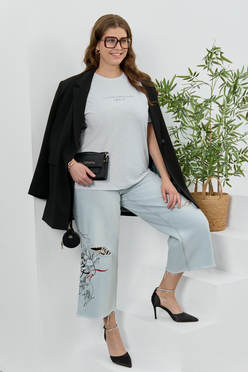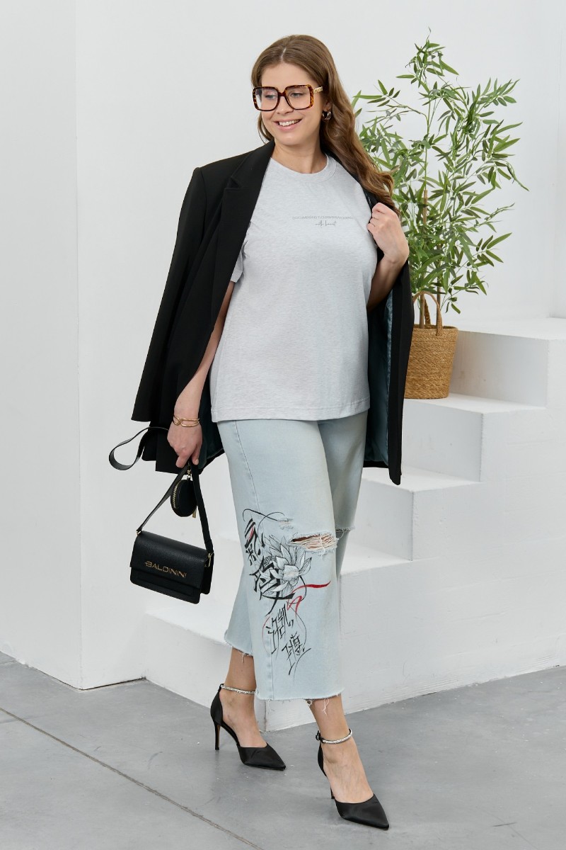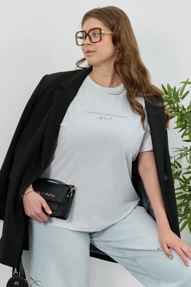 Футболка женская "Соло" кулирка с лайкрой (р-ры: 48-64) серый меланж