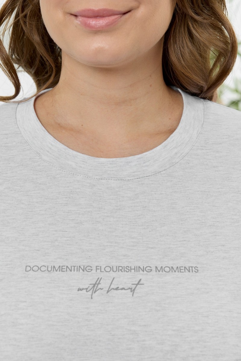 Представляем Вашему вниманию женскую футболку из гладкокрашеного трикотажного полотна «кулирка с лайкрой», полуприталенного силуэта, с втачными короткими рукавами. На полочке выполнена печать в технике «шелкографии». Горловина овальной формы обработана втачной планкой с отделочной строчкой по шву притачивания.