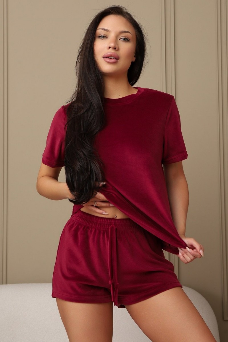 Костюм двойка женский 728 велюр (р-ры: 42-56) бордовый