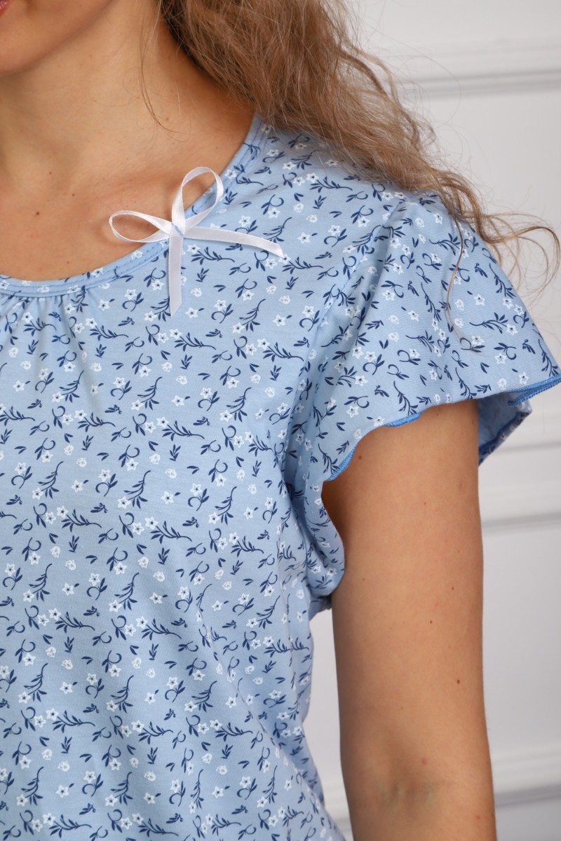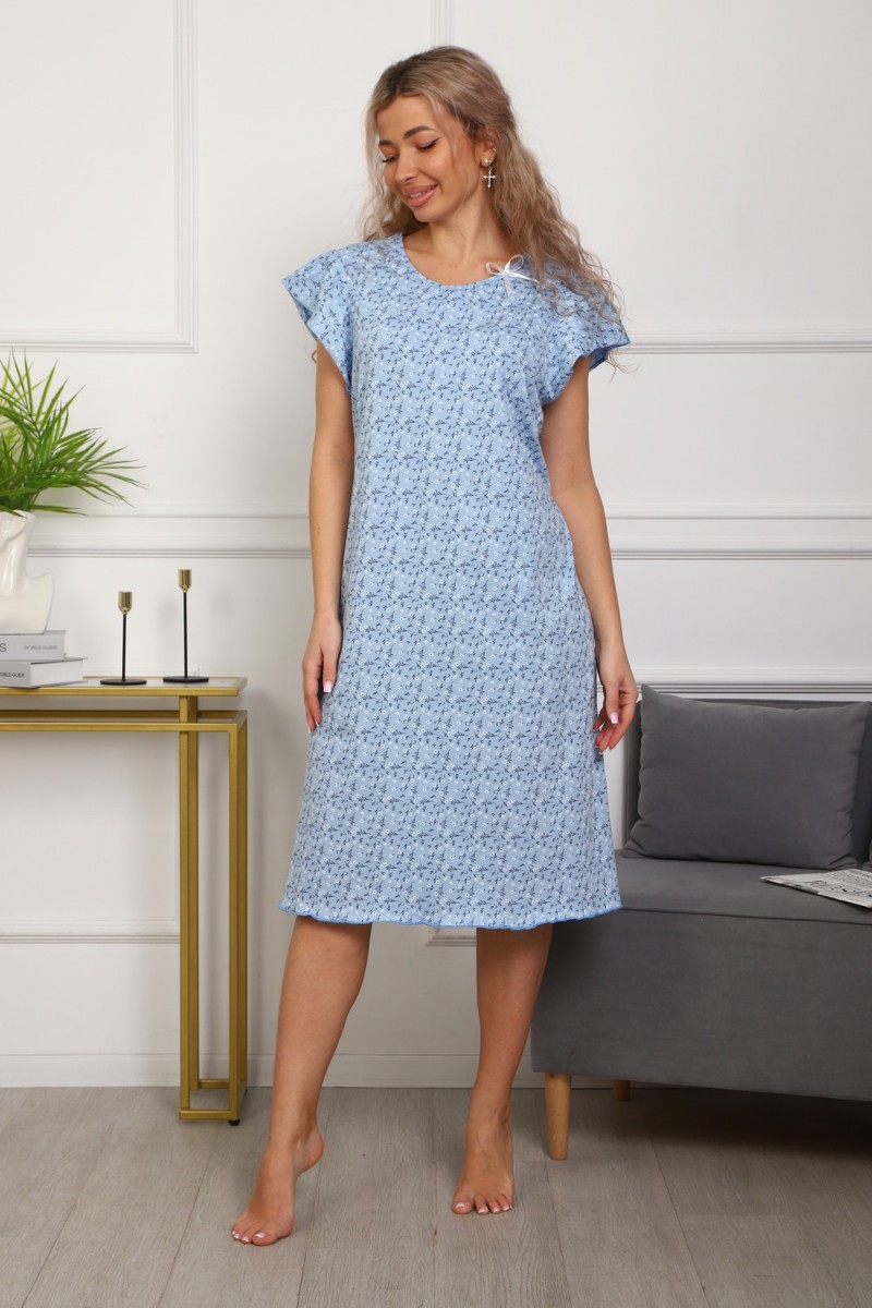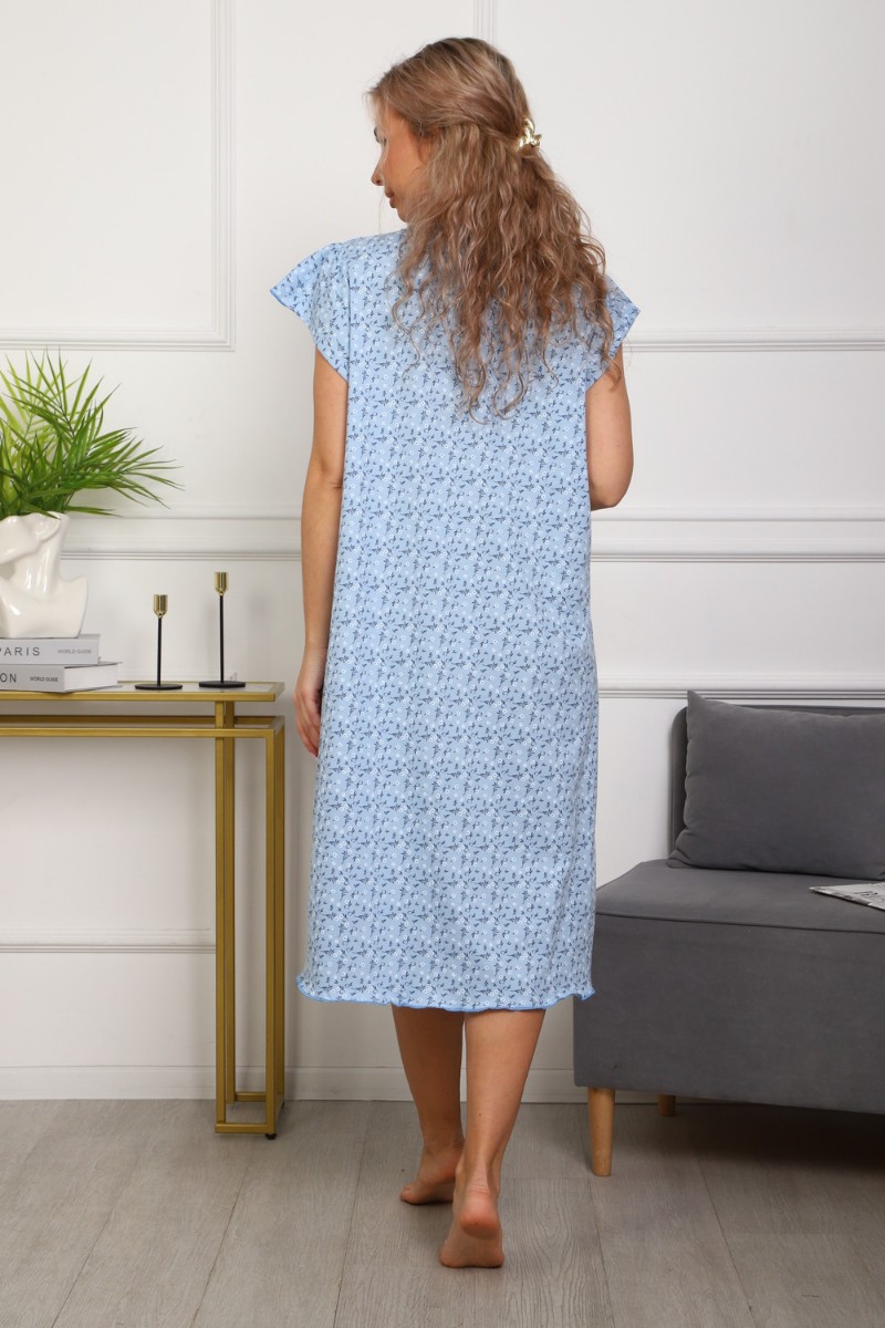 Сорочка женская №312 кулирка пенье (р-ры: 50-60) голубой цветок