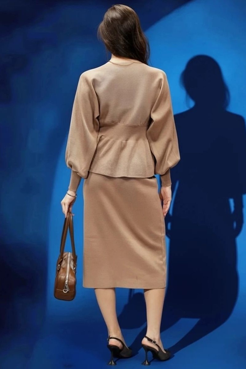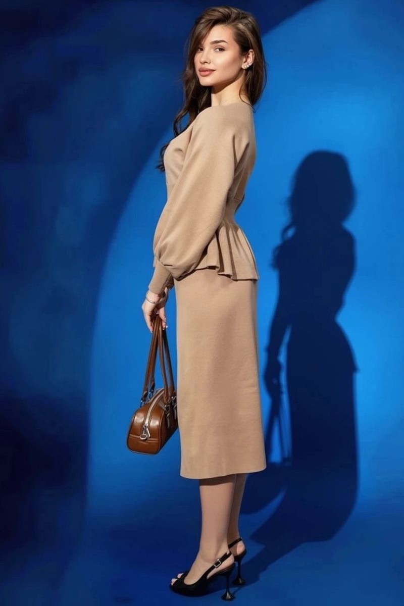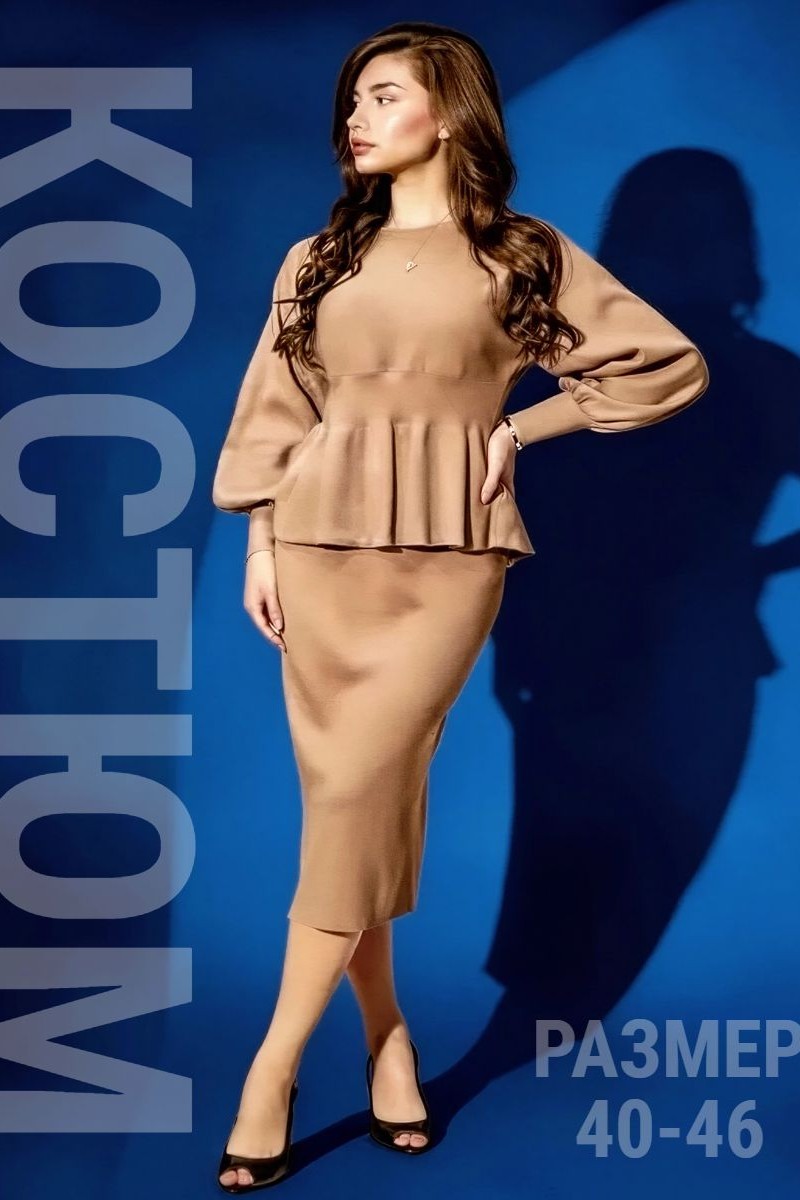 Представляем Вашему вниманию вязаный трикотажный костюм с юбкой — воплощение женственности и комфорта в одном образе. Модель состоит из элегантного верха с баской, юбки, рукав‑фонарик. Баска изящно подчёркивает линию талии и создаёт утончённый силуэт, визуально корректируя пропорции, а рукав‑фонарик придаёт наряду романтичный и игривый акцент, не сковывая движений. Костюм выполнен из мягкого вязаного трикотажа с оптимальным составом: 30 % хлопок, 40 % вискоза, 30 % полиэстер — такая комбинация обеспечивает приятные тактильные ощущения, хорошую воздухопроницаемость, эластичность для комфортной посадки и устойчивость к образованию катышков. Материал хорошо держит форму, не мнётся и сохраняет аккуратный вид даже при длительной носке, а вязка выглядит стильно и актуально в любой сезон. Модель идеально подходит для межсезонья — осени и весны, а в сочетании с плотными колготками костюм будет уместен и в зимний период. Размеры представлены в диапазоне 40–46, что позволяет подобрать идеальный вариант для разных типов фигуры: крой продуман так, чтобы подчеркнуть достоинства и обеспечить свободу движений. Уход за изделием не потребует особых усилий: рекомендуется деликатная стирка при температуре не выше 30∘C, сушка в расправленном виде вдали от нагревательных приборов, запрещено отбеливать, при необходимости допускается бережная химчистка. Костюм легко вписать в разные образы: с балетками или лоферами получится уютный повседневный лук, с каблуками — элегантный наряд для встречи с друзьями или свидания, а сдержанные аксессуары помогут адаптировать модель даже к офисному стилю с нестрогим дресс-кодом.