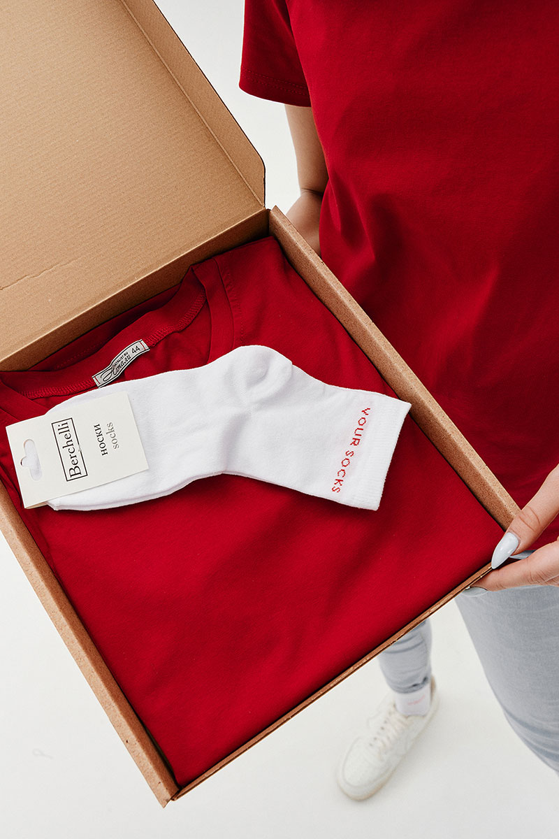 Набор подарочный женский (носки+футболка) №11807 (последний размер) красный 50