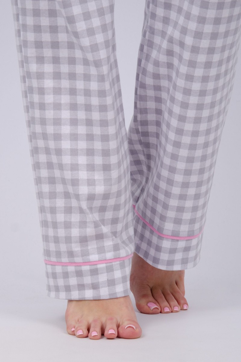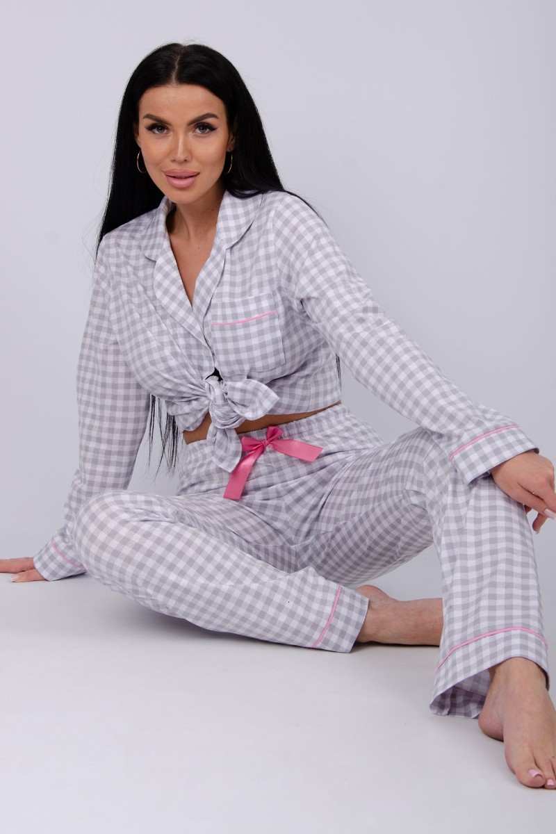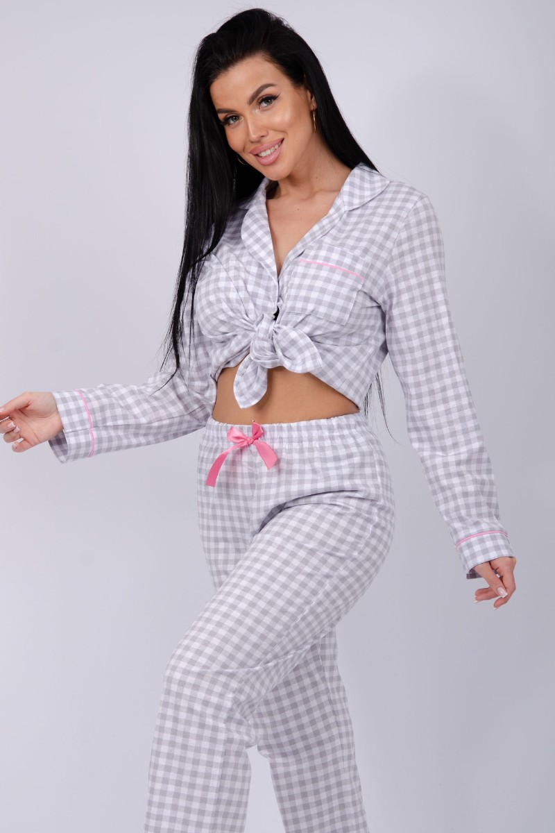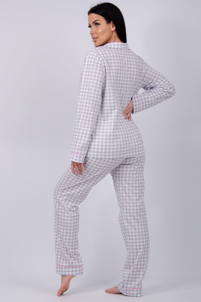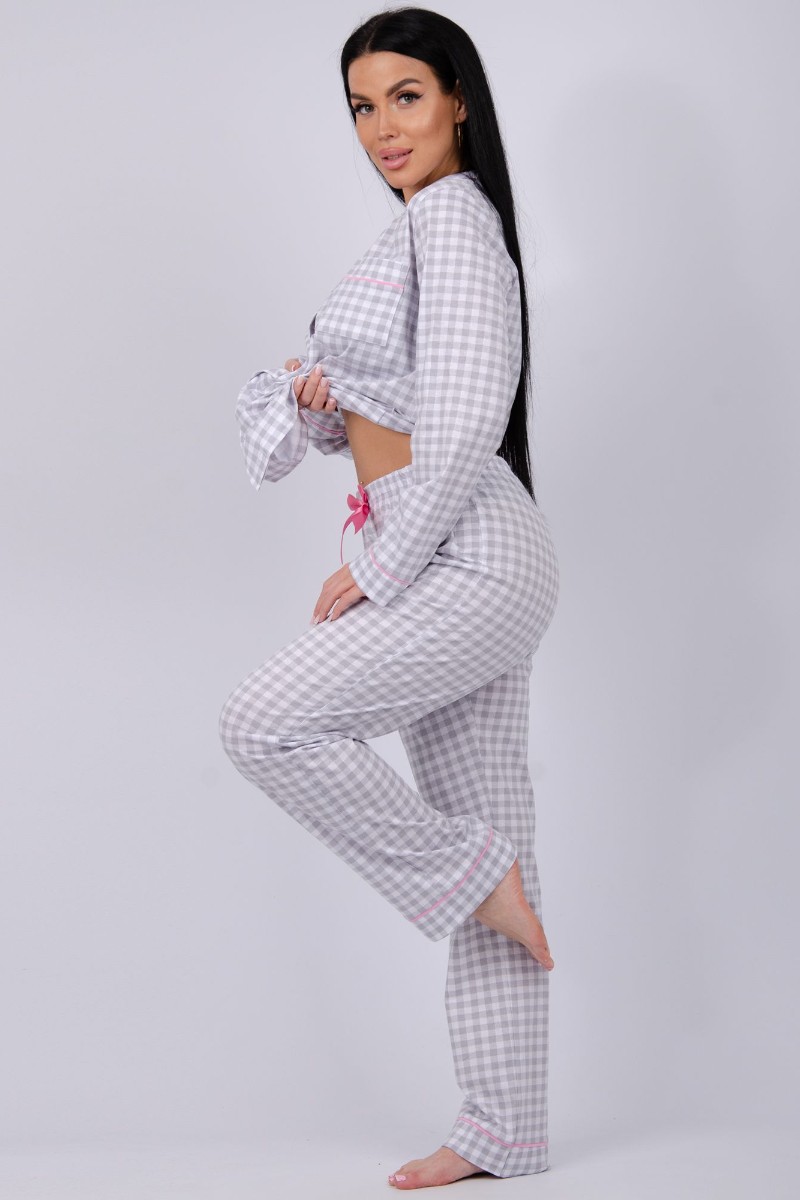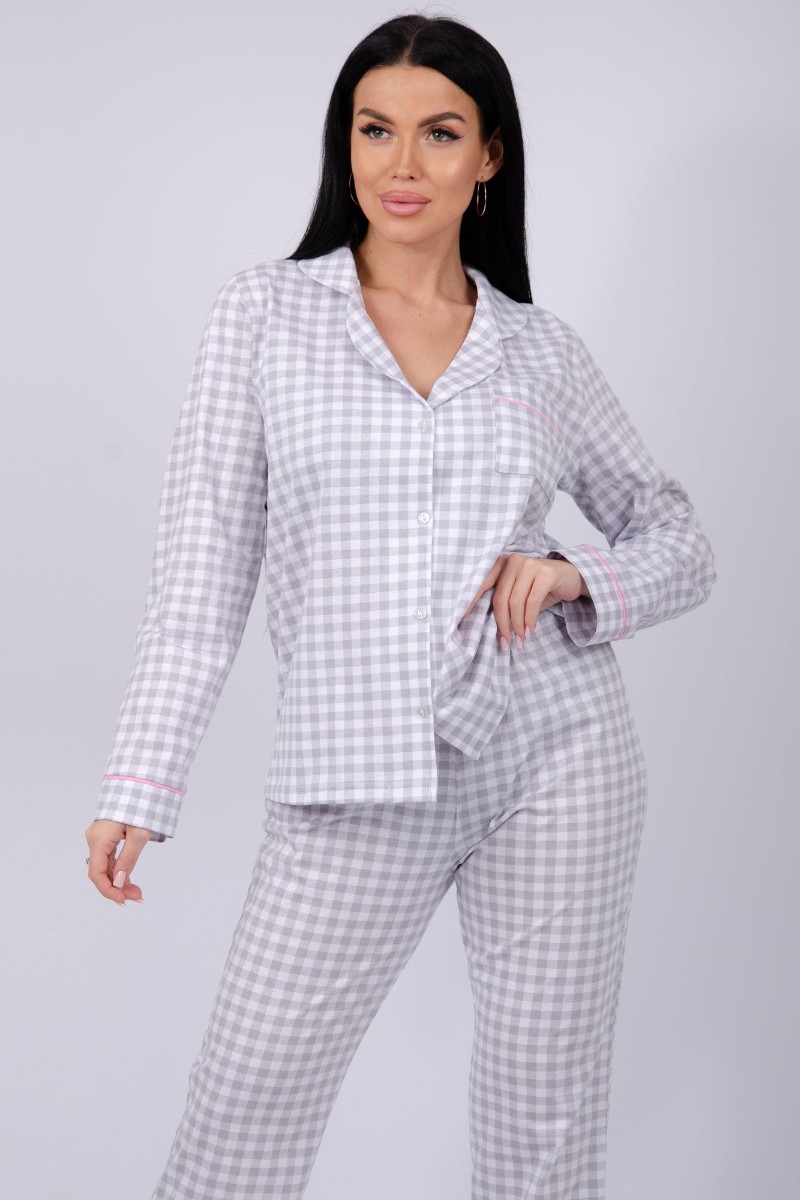Пижама женская "Бостон" кулирка (последний размер) серая клетка 52
