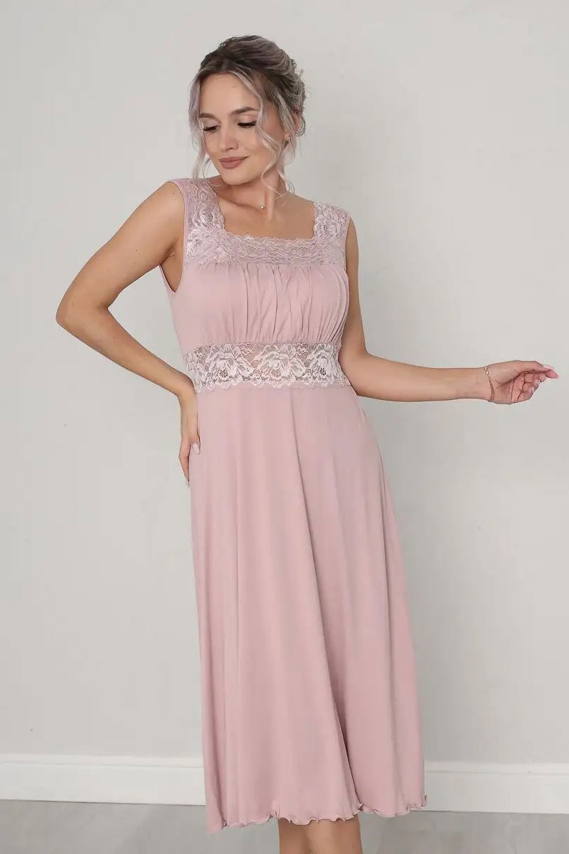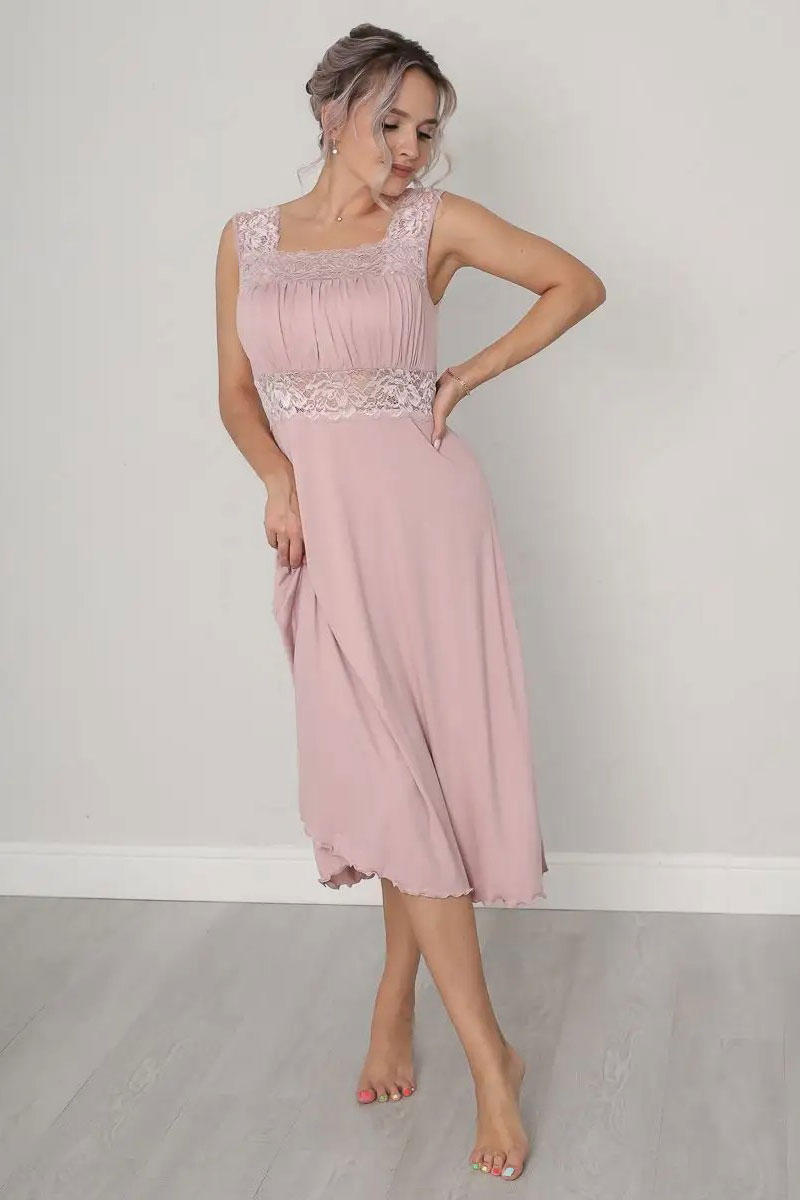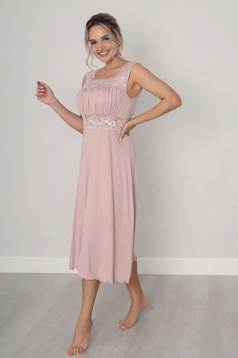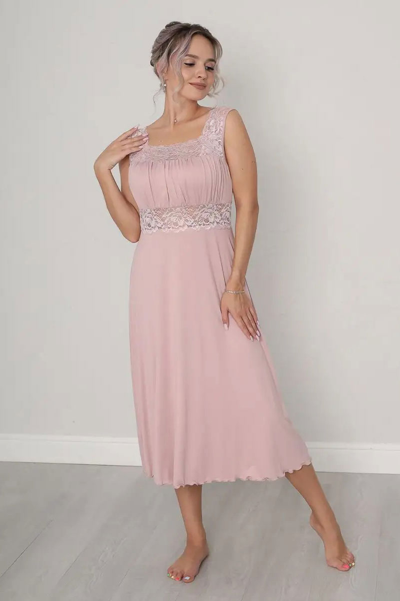 Сорочка женская длинная "Риана" вискоза с кружевом (последний размер) телесный 50