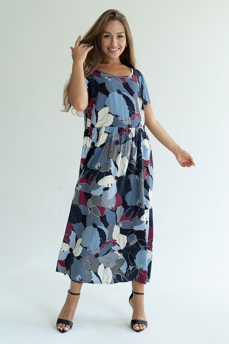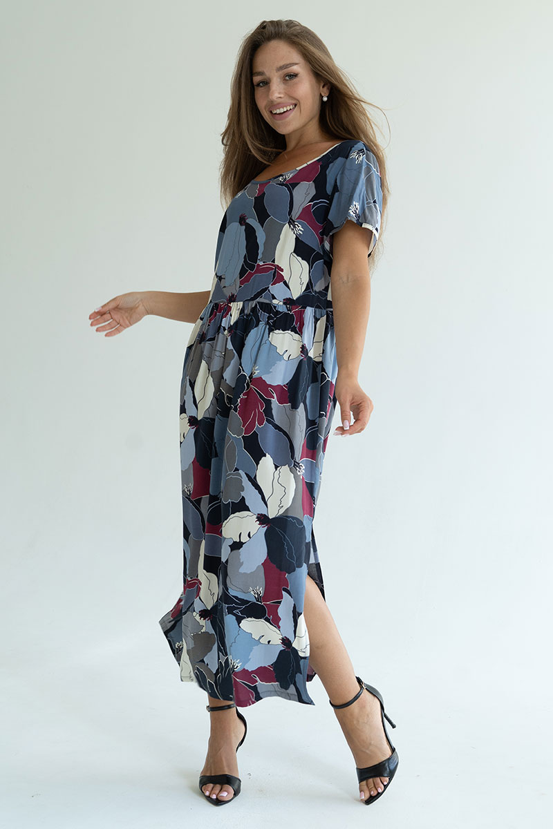 Представляем Вашему вниманию очаровательное платье, изготовленное из качественного материала. Платье романтического кроя, комфортное и приятное к телу. Платье длиной до середины голени имеет снизу небольшие боковые разрезы для красоты и удобства. Оно невероятно универсальное и практичное. Идеально подходит для летней жары, а также для повседневной носки, встреч с подругами или, в некоторых случаях, даже для офиса. Горловина имеет округлый вырез, рукава короткие. Платье отлично сидит на фигуре любого типа и позволит Вам чувствовать себя уверенно и привлекательно.