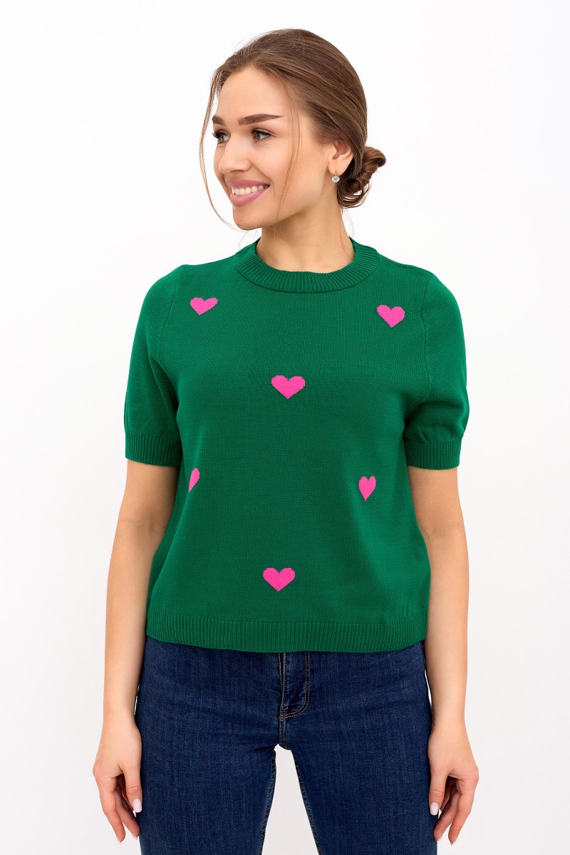 Футболка женская "Сердечки З" трикотажное полотно+пряжа (последний размер) зеленый 44-46