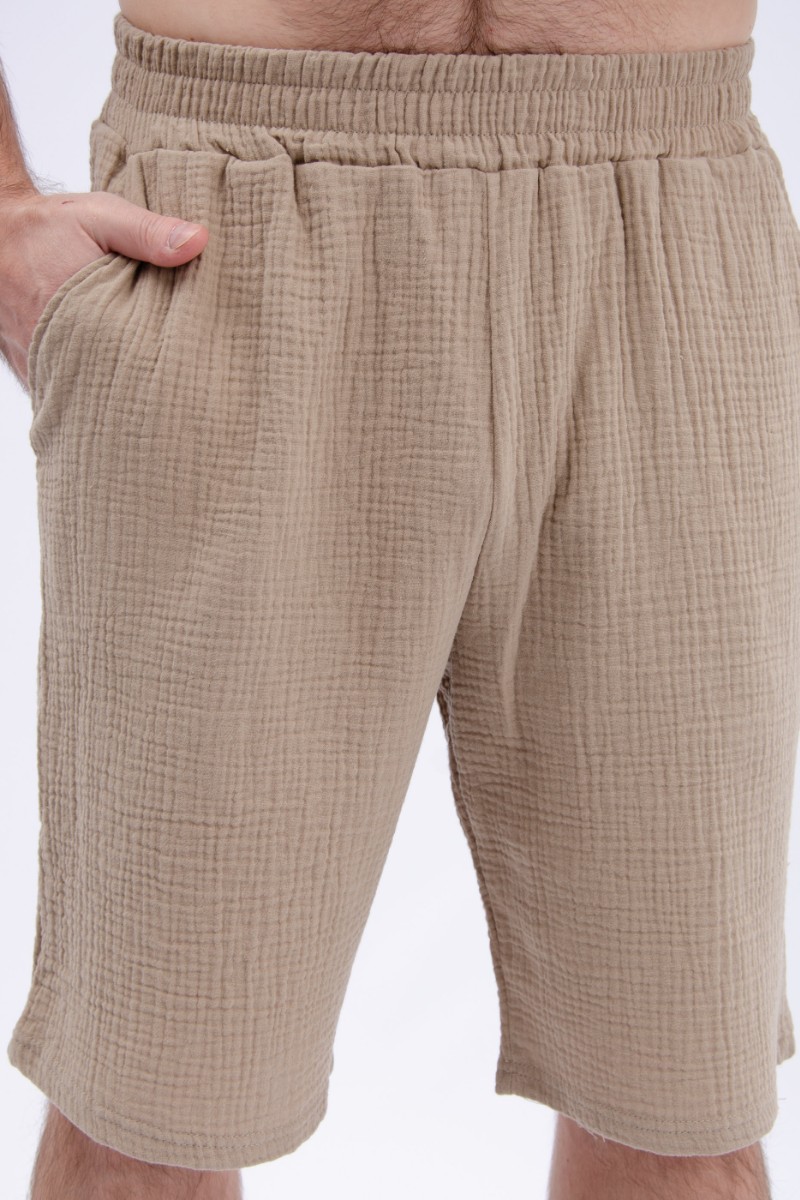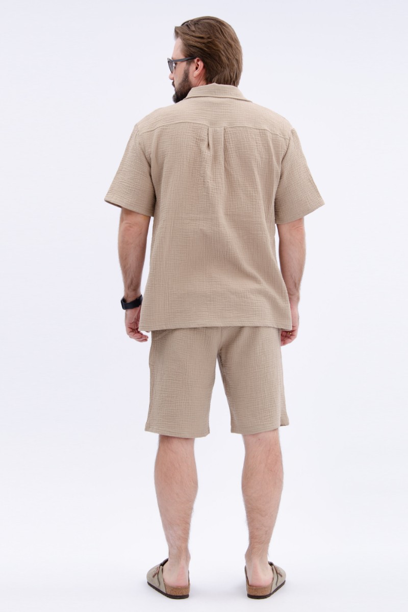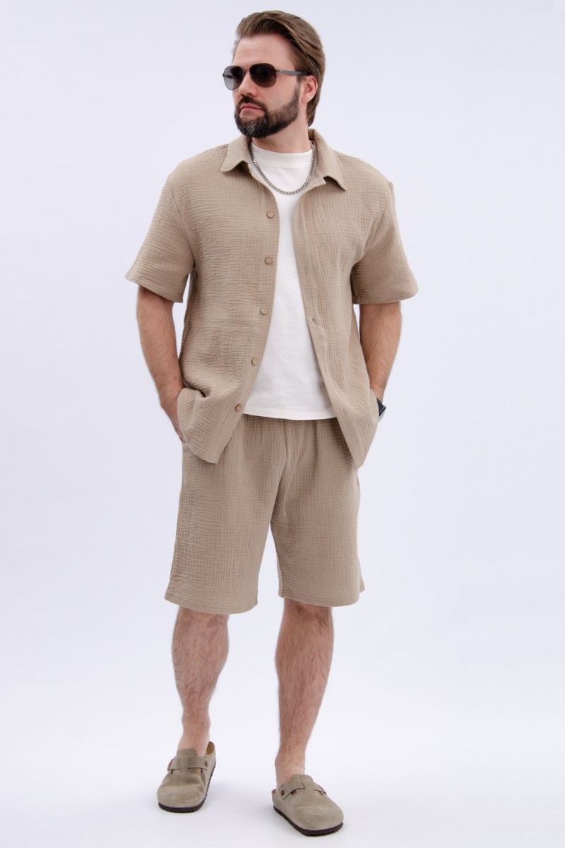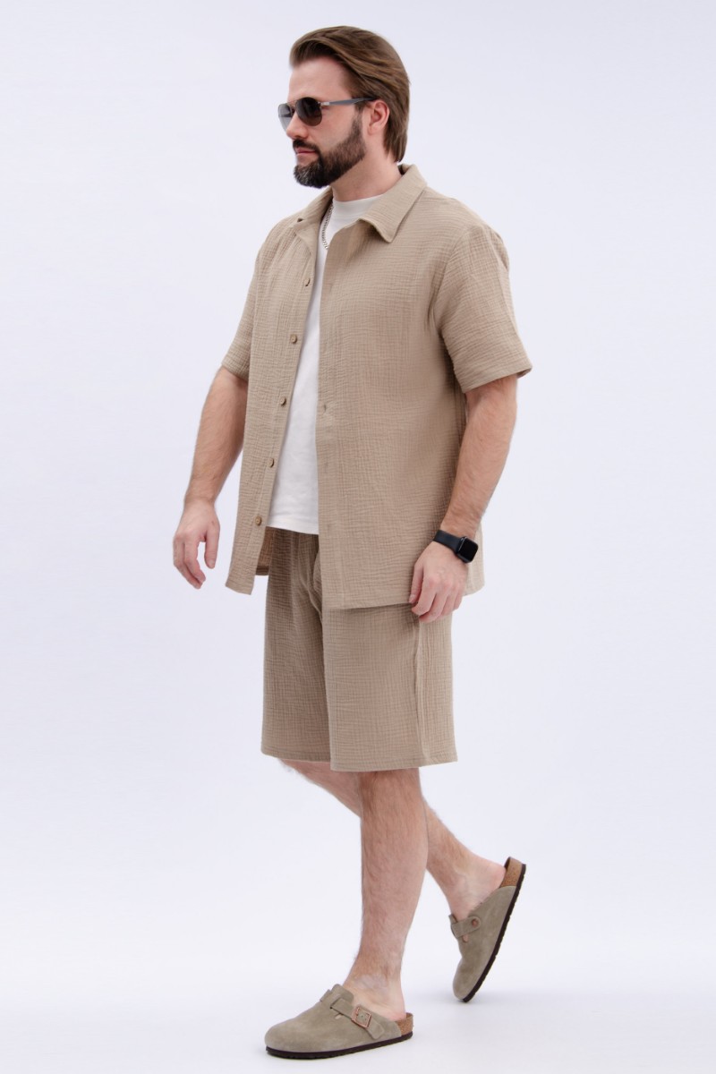 Представляем Вашему вниманию мужской костюм двойку, состоящий из рубашки на пуговицах и шортов. Сшито из высококачественного муслина - 100% хлопок, позволяющий коже дышать. Костюм хорошо сидит на фигуре и подчеркивает её достоинства. Отдых в нём будет максимально комфортным и расслабляющим.