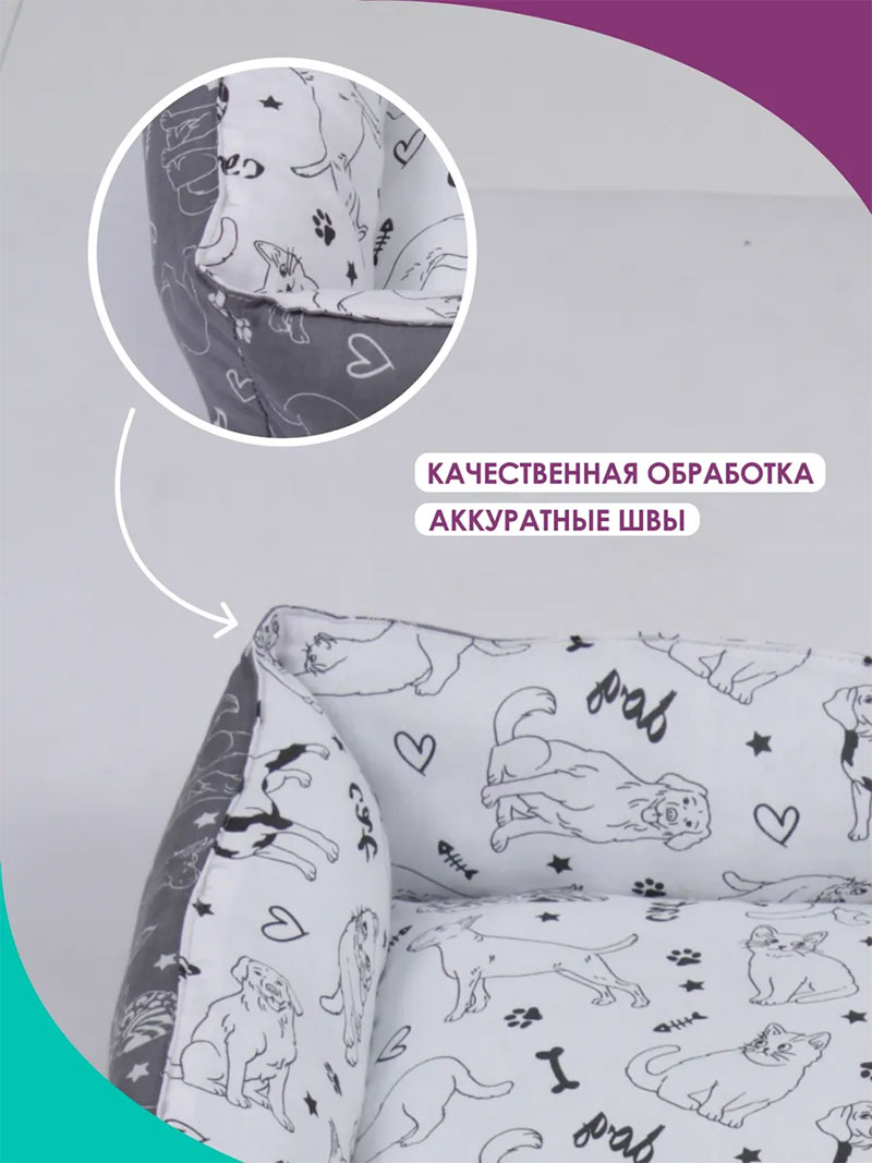 Легко чистится, что упрощает уход. Дизайн подходит для любого интерьера, от современного до уютного. Бортики защищают от сквозняков и сохраняют тепло. Лежак подходит для кошек и игривых собак всех возрастов. Он станет стильным акцентом в вашем доме и выдержит активные игры.