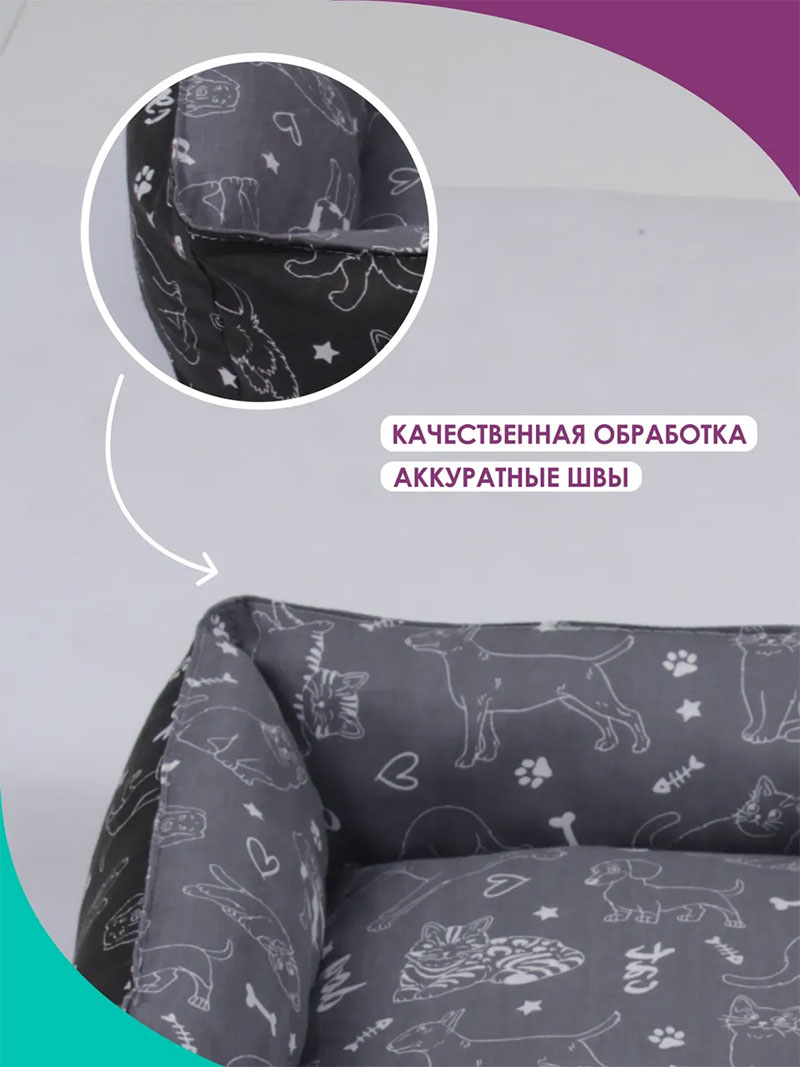 Легко чистится, что упрощает уход. Дизайн подходит для любого интерьера, от современного до уютного. Бортики защищают от сквозняков и сохраняют тепло. Лежак подходит для кошек и игривых собак всех возрастов. Он станет стильным акцентом в вашем доме и выдержит активные игры.