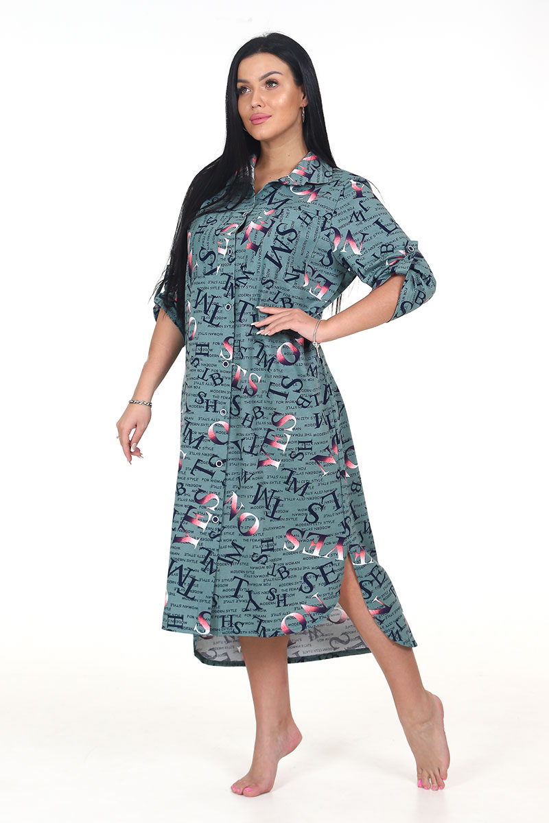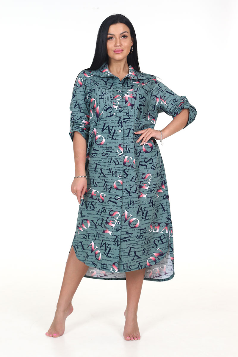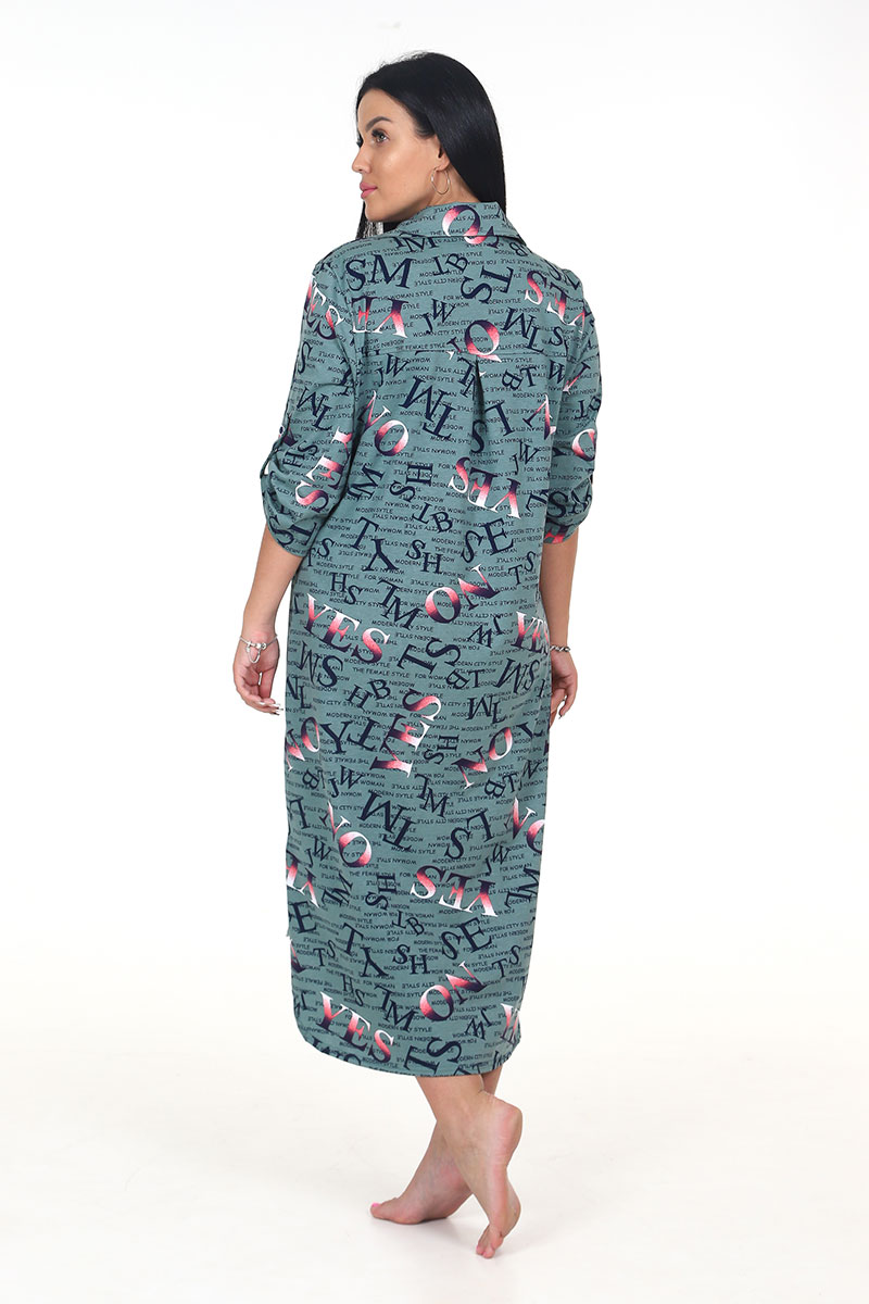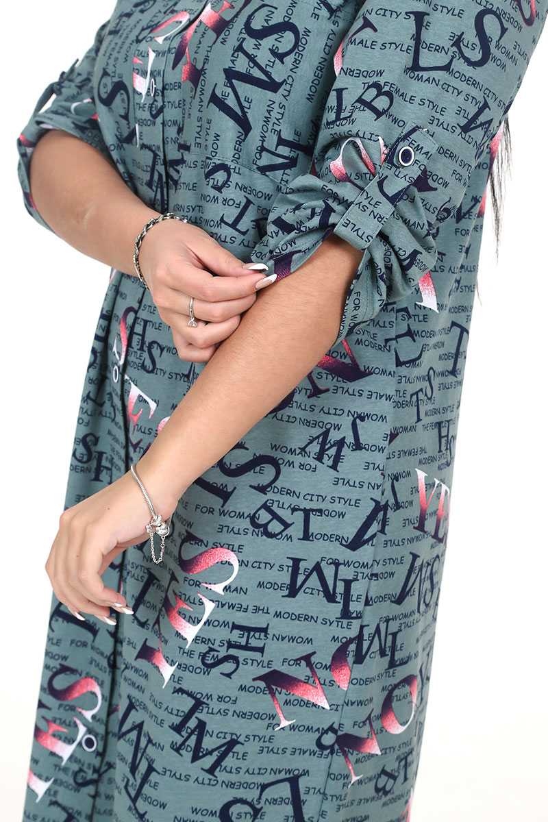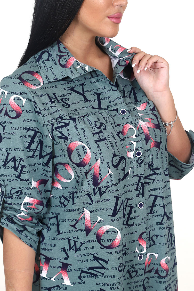 Туника женская "Миди" ТК-25 кулирка (последний размер) буквы перелив хаки 50,54,56